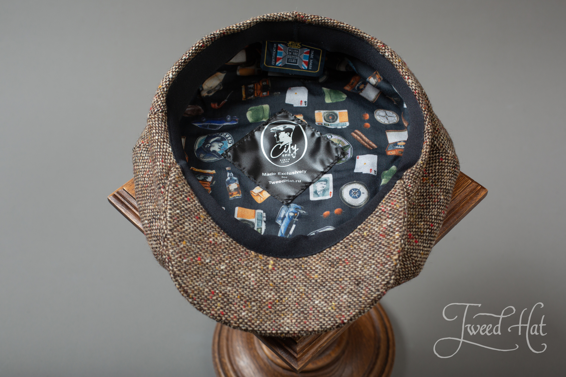 Vintage early XX century flat cap by old Belgian headwear factory City Sport (from Ardooie, West Flanders), produced exclusively for Tweed Hat store.