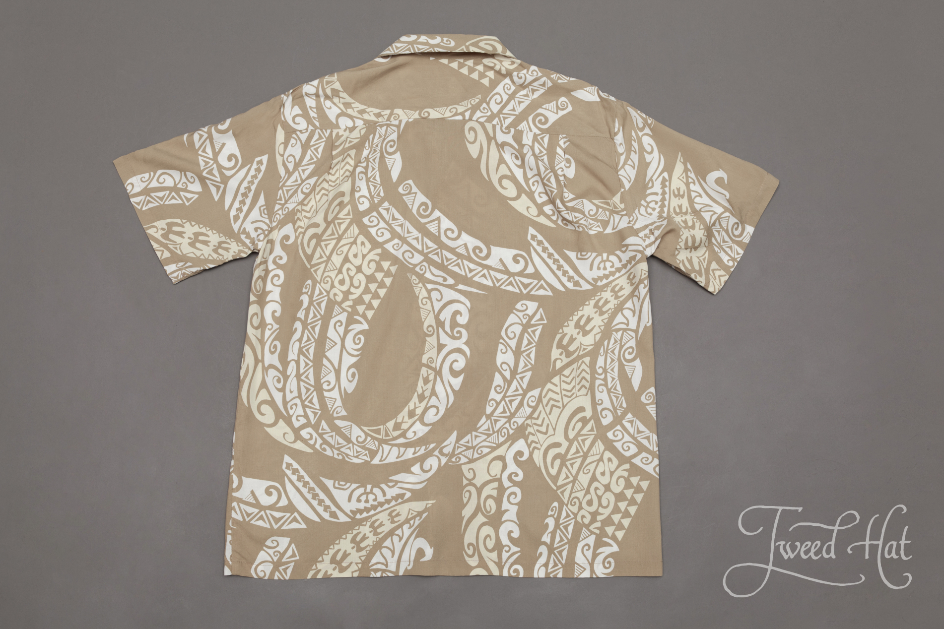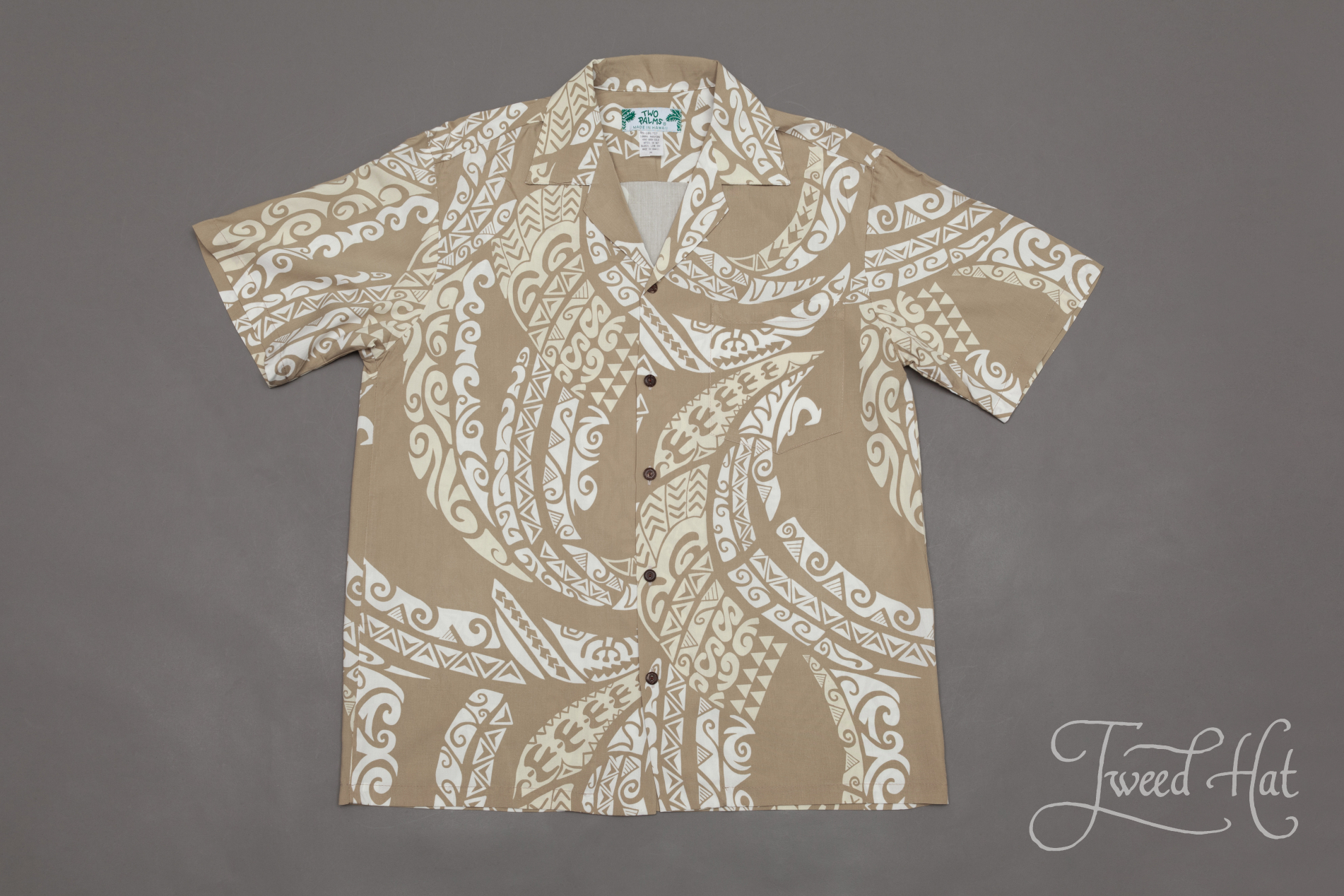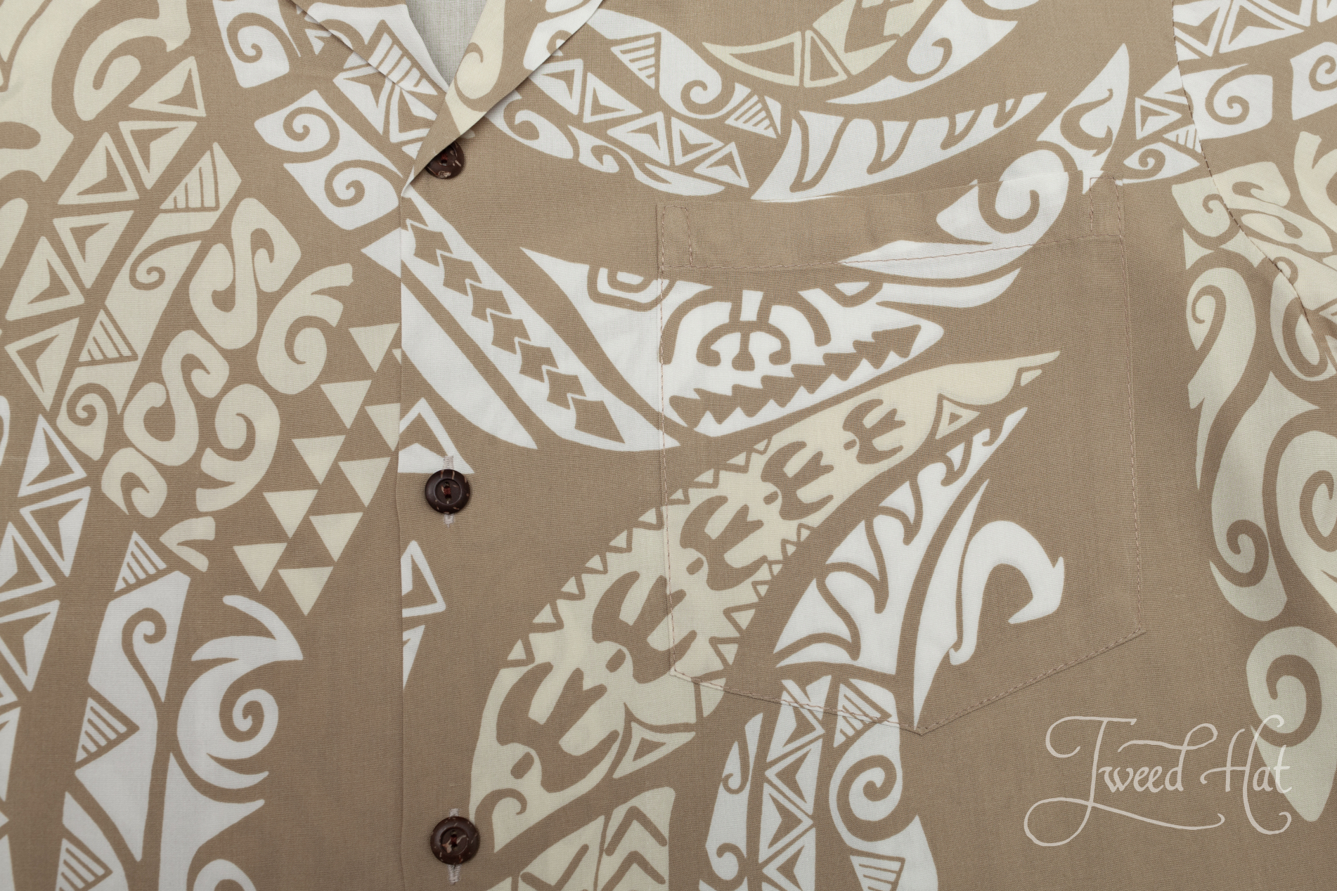 Beige Rayon Aloha Shirt with Hawaiian Tattoo by Two Palms Hawaii