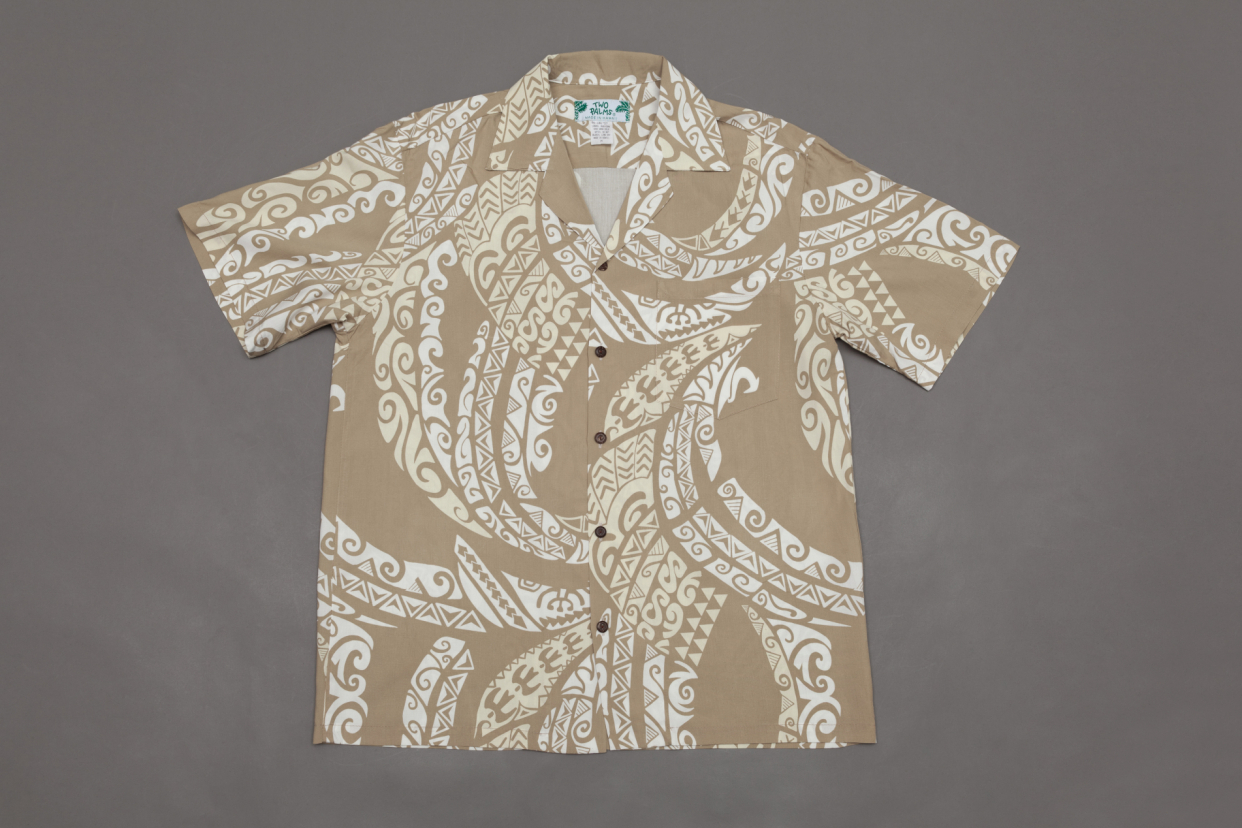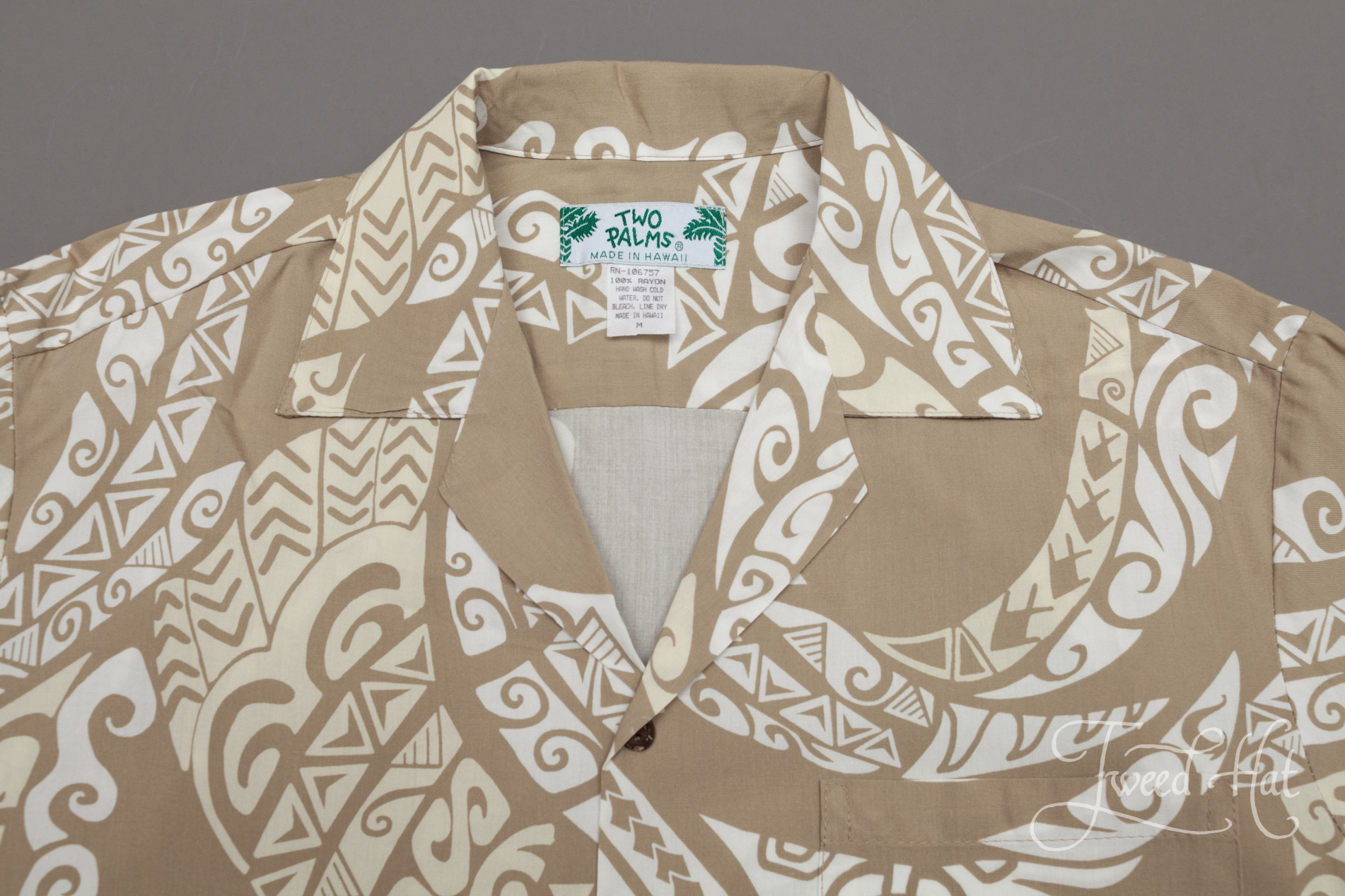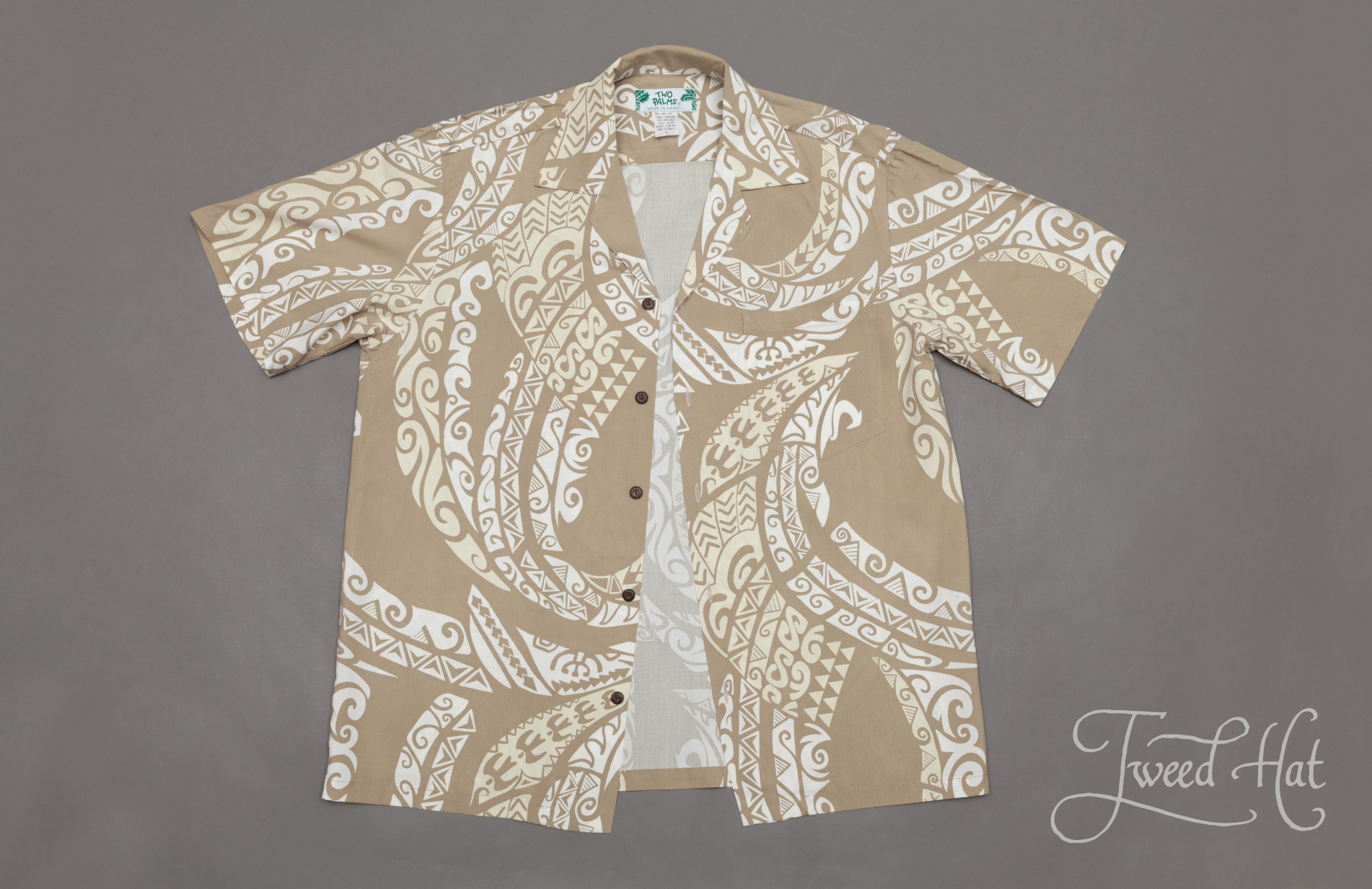 Beige Rayon Aloha Shirt with Hawaiian Tattoo by Two Palms Hawaii