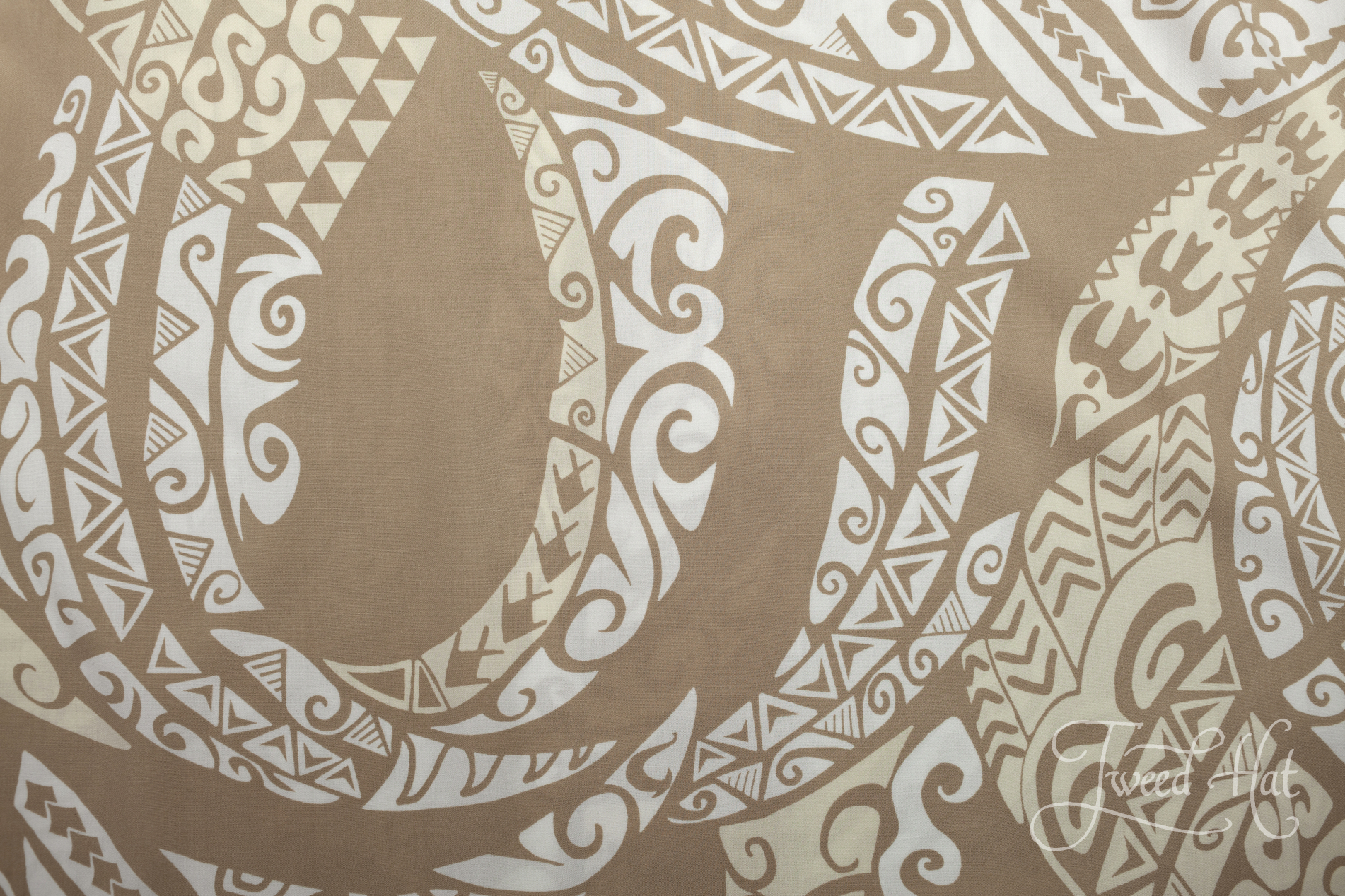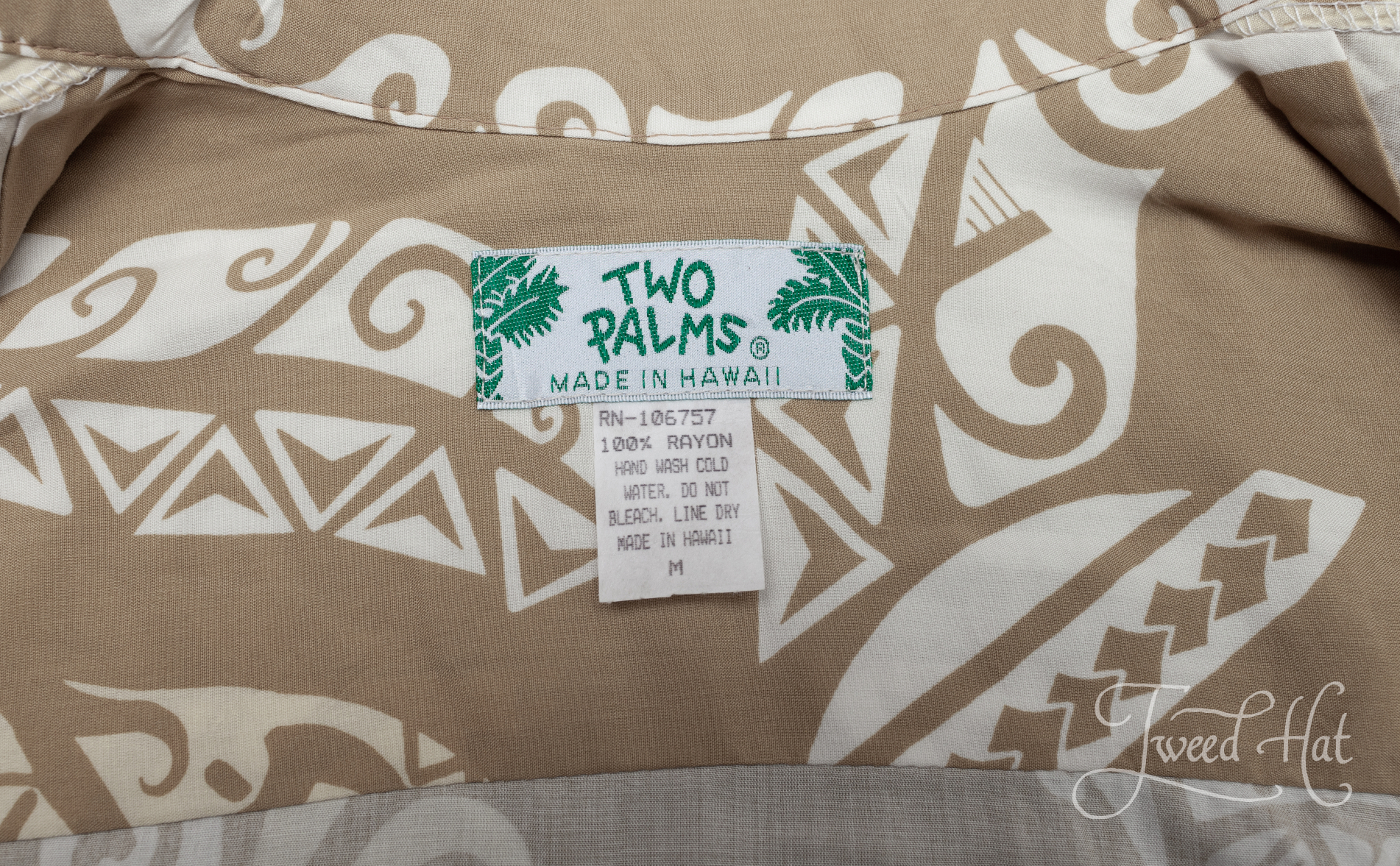 Бежевая гавайская рубашка с гавайскими татуировками из рэйона Two Palms Hawaii /100% Rayon/