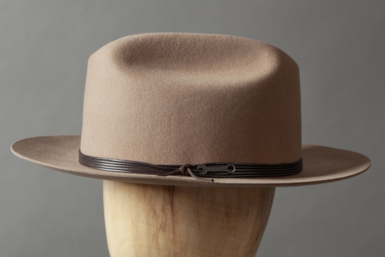 This classic Western-style hat from Stetson is reminiscent of their famous Open Road model, a cowboy hat with a moderate brim adapted for urban wear.