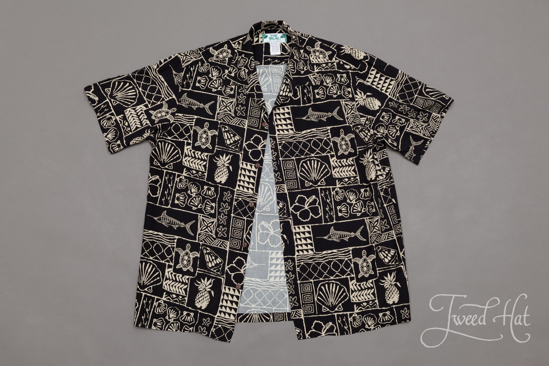 Классическая гавайская рубашка от маленькой фабрики Two Palms из Гонолулу, столицы Гавайских островов.
