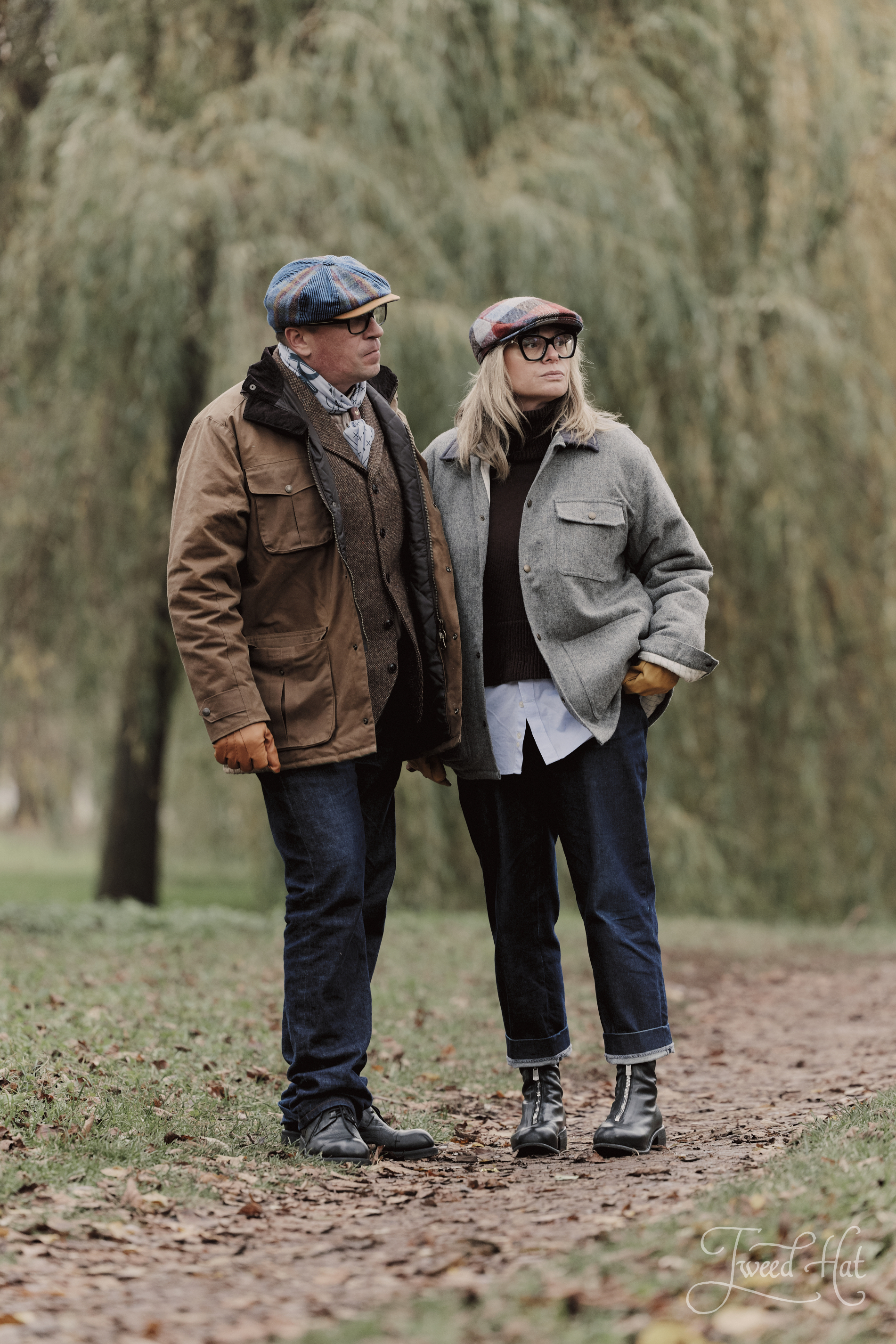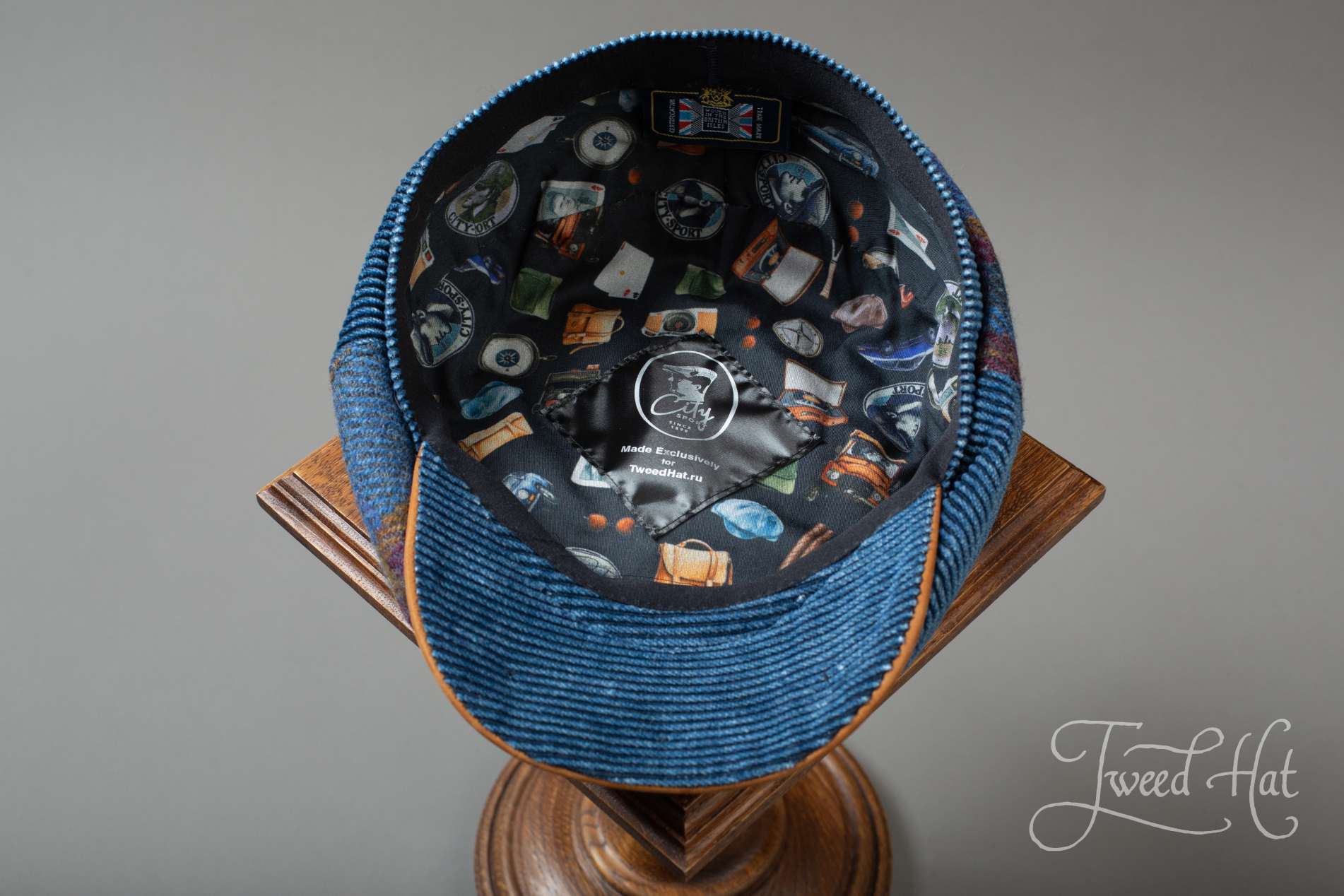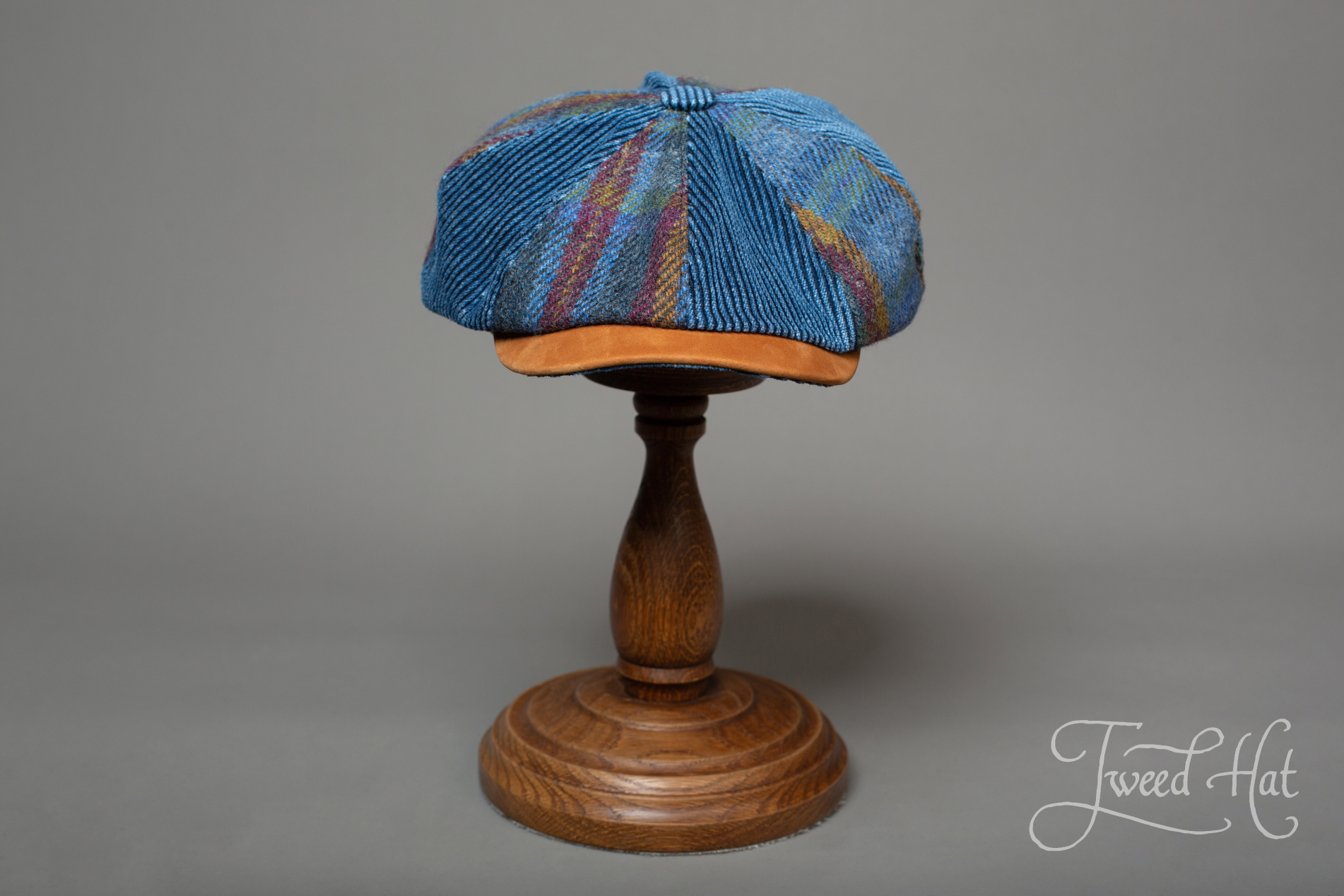 - cap peaks are made of two materials: checked British tweed and textured corduroy,