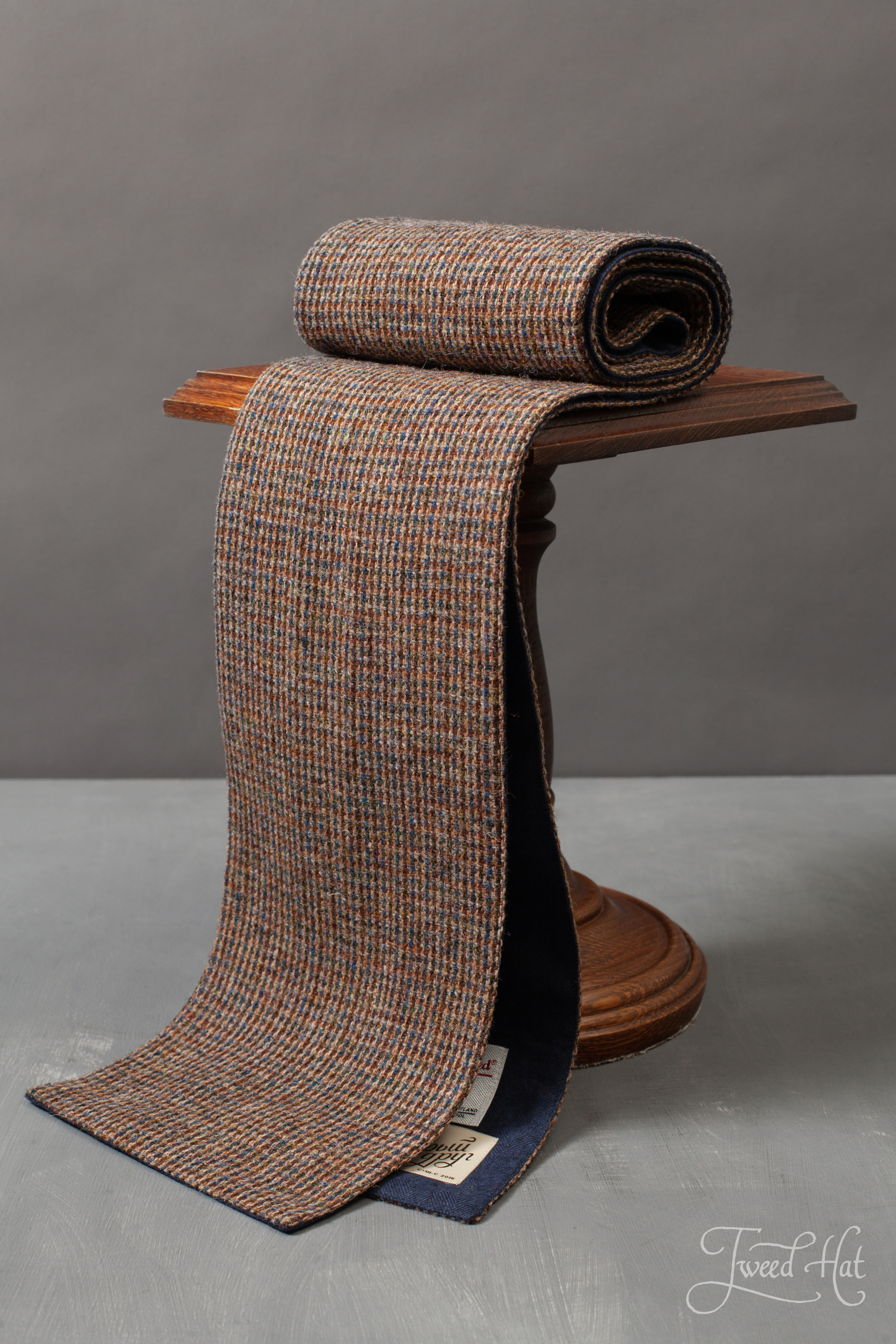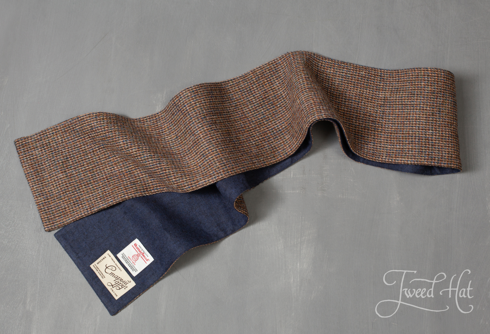 Brown Blue Harris Tweed Small Check Scarf with Linen Flannel Lining by Old Pal /Harris Tweed/