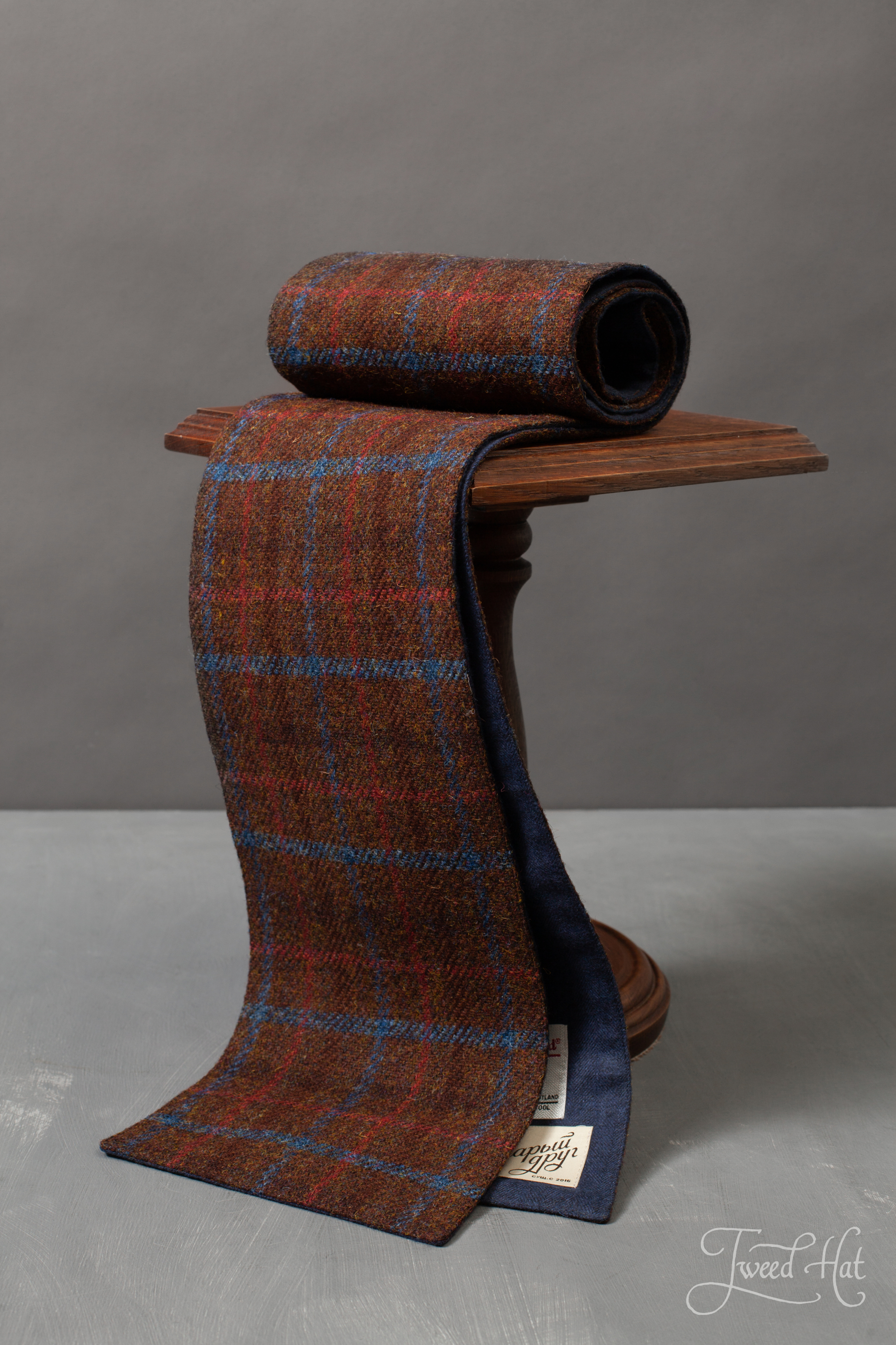 Brown Check Harris Tweed Scarf with Linen Flannel Lining by Old Pal /Harris Tweed/