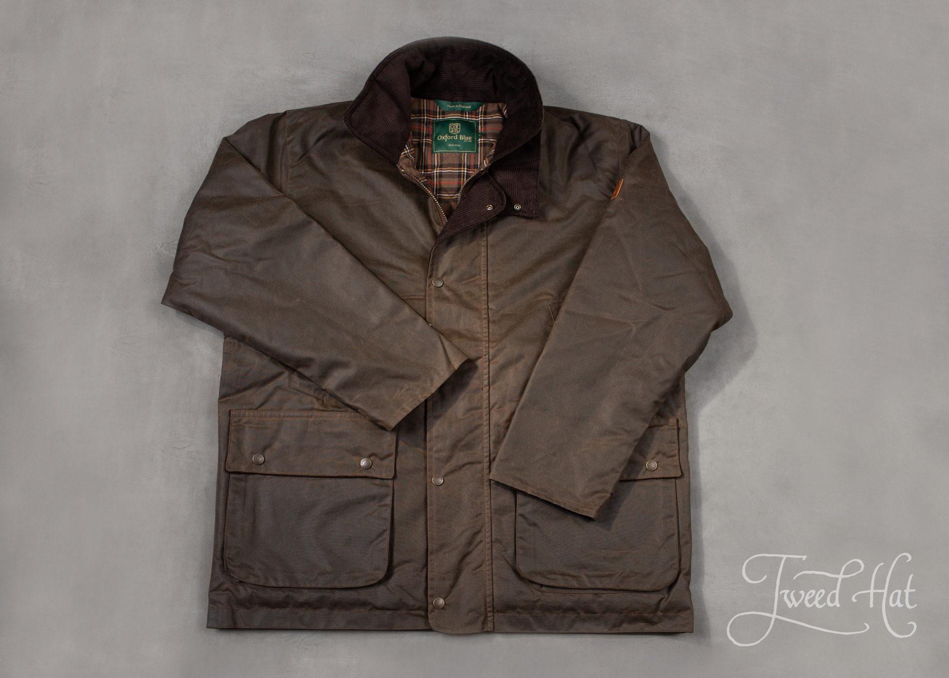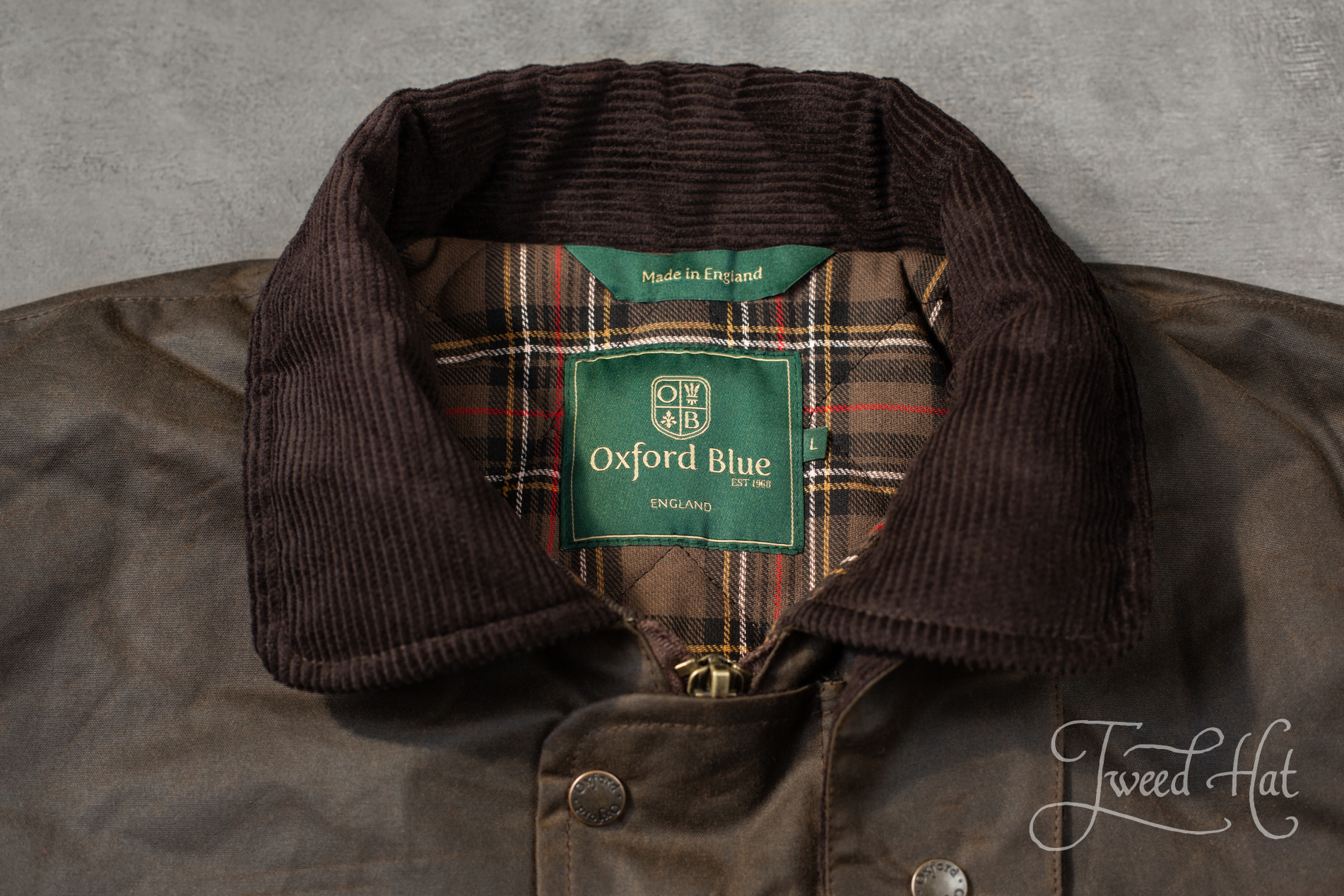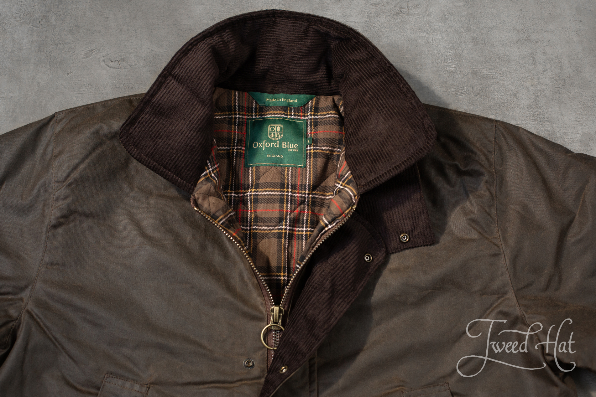 A classic English country jacket made of authentic waxed cotton from the Oxford Blue mill in Birmingham.