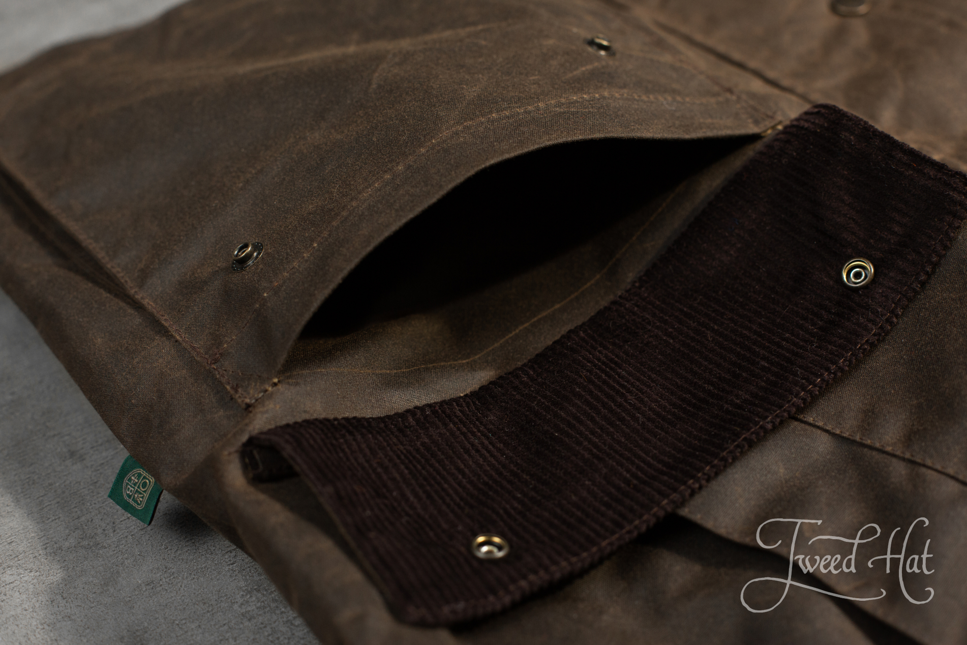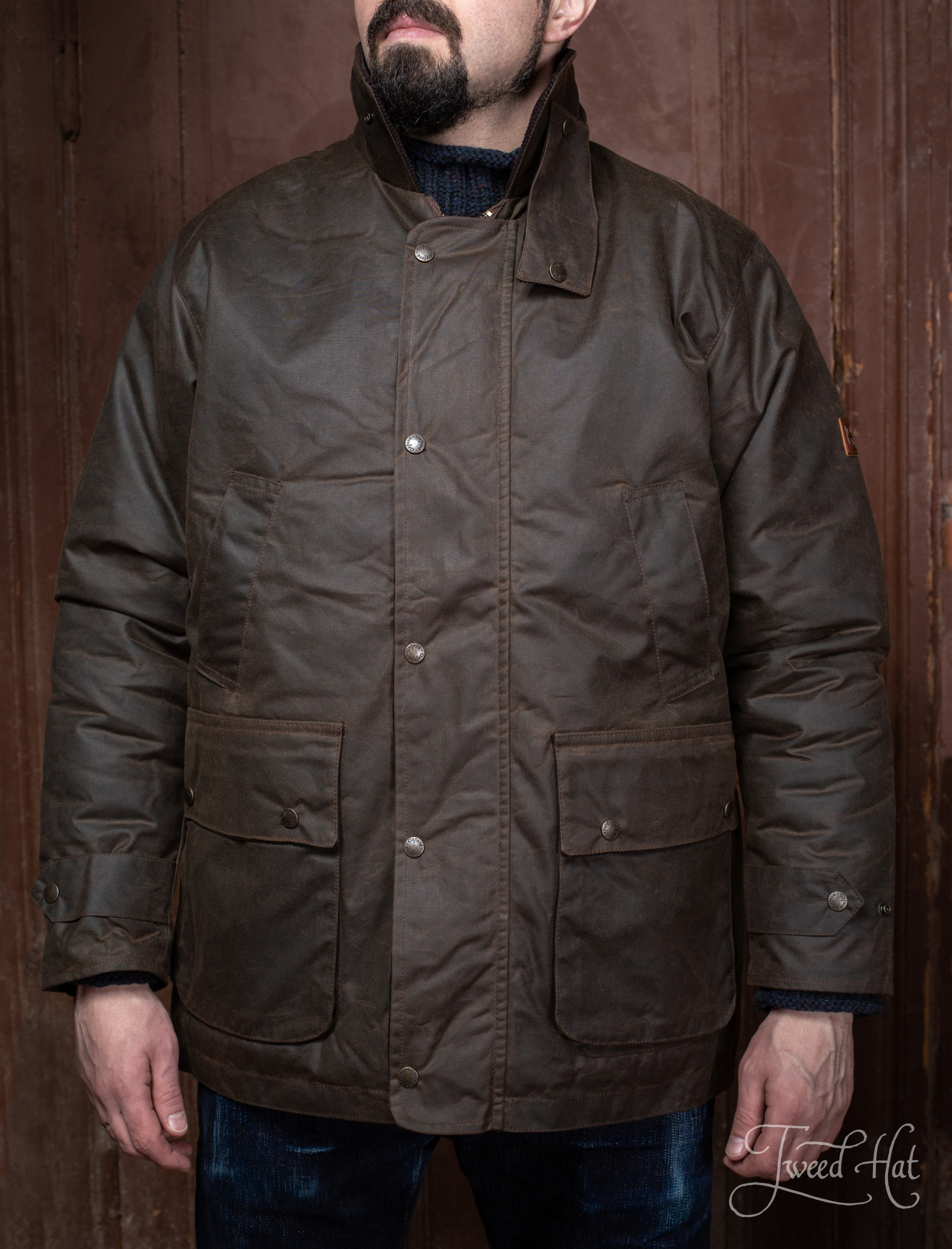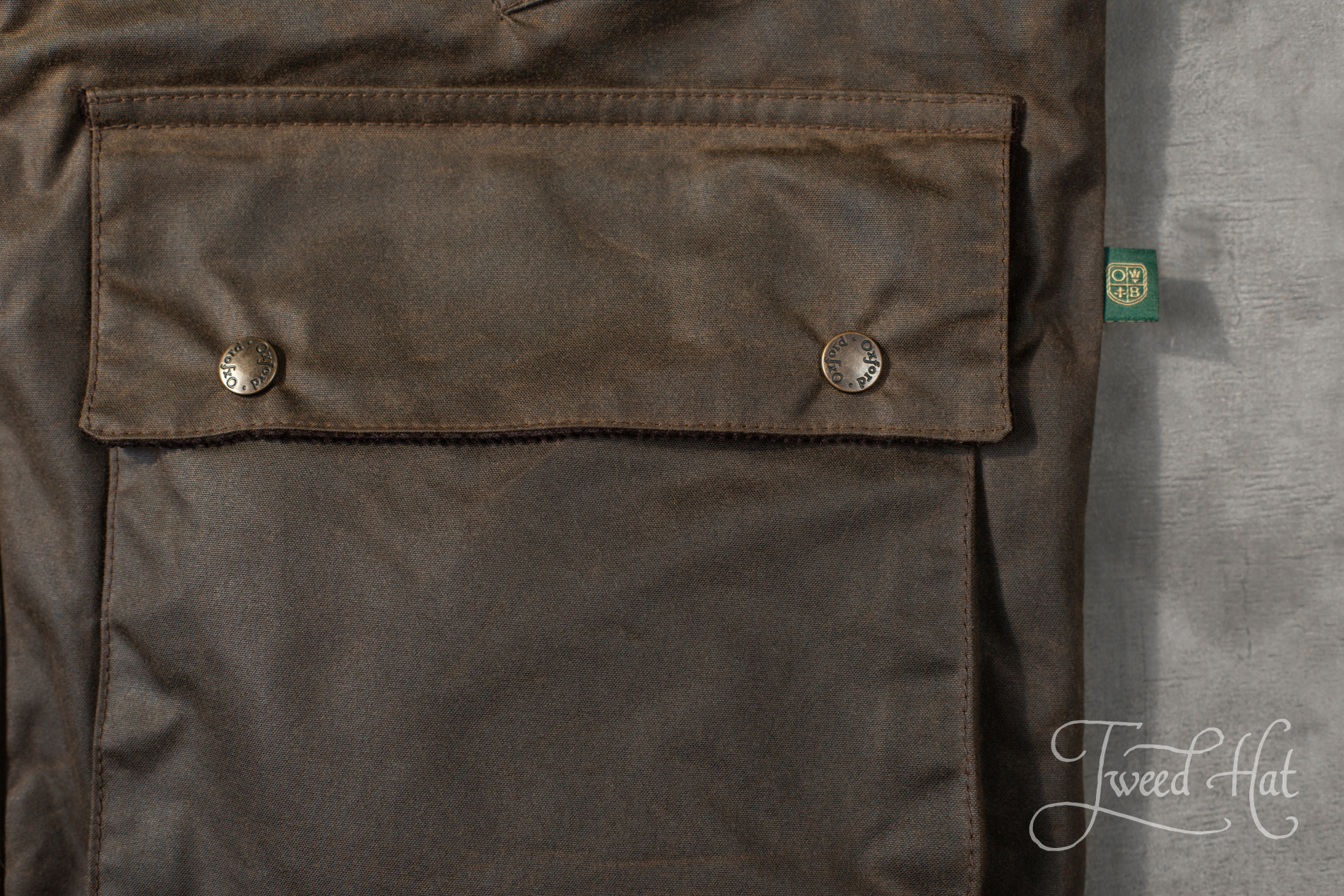 A classic English country jacket made of authentic waxed cotton from the Oxford Blue mill in Birmingham.
