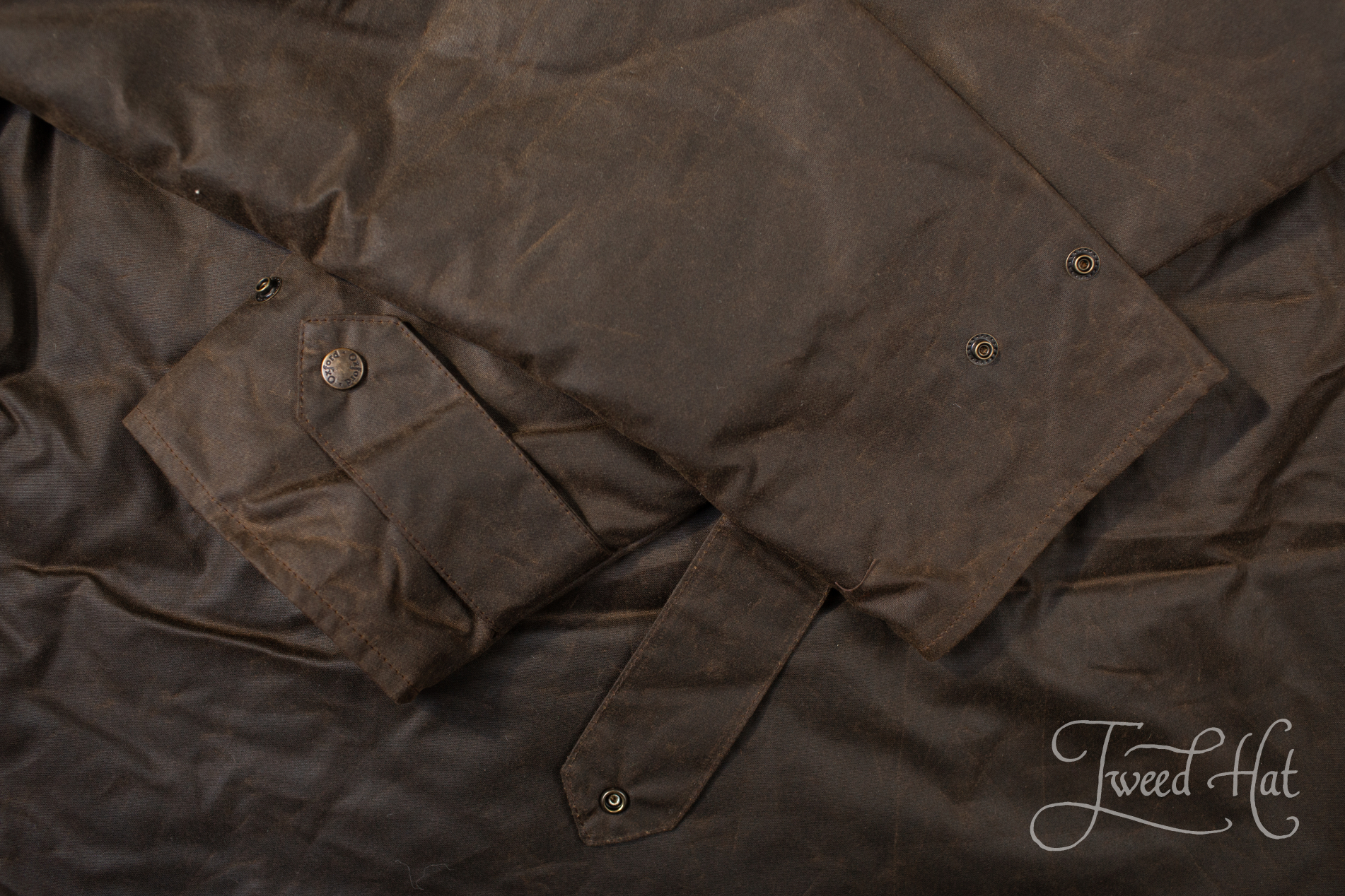 - Adjustable sleeve cuffs with a tab and two brass snaps,
