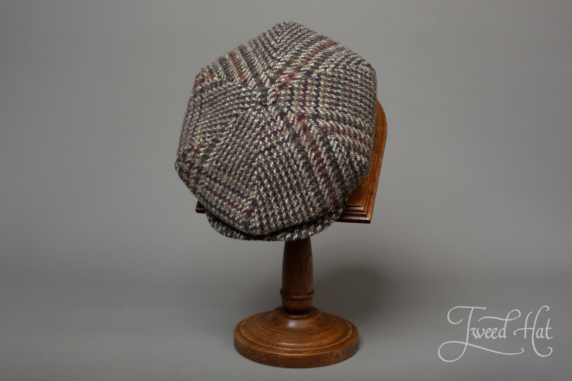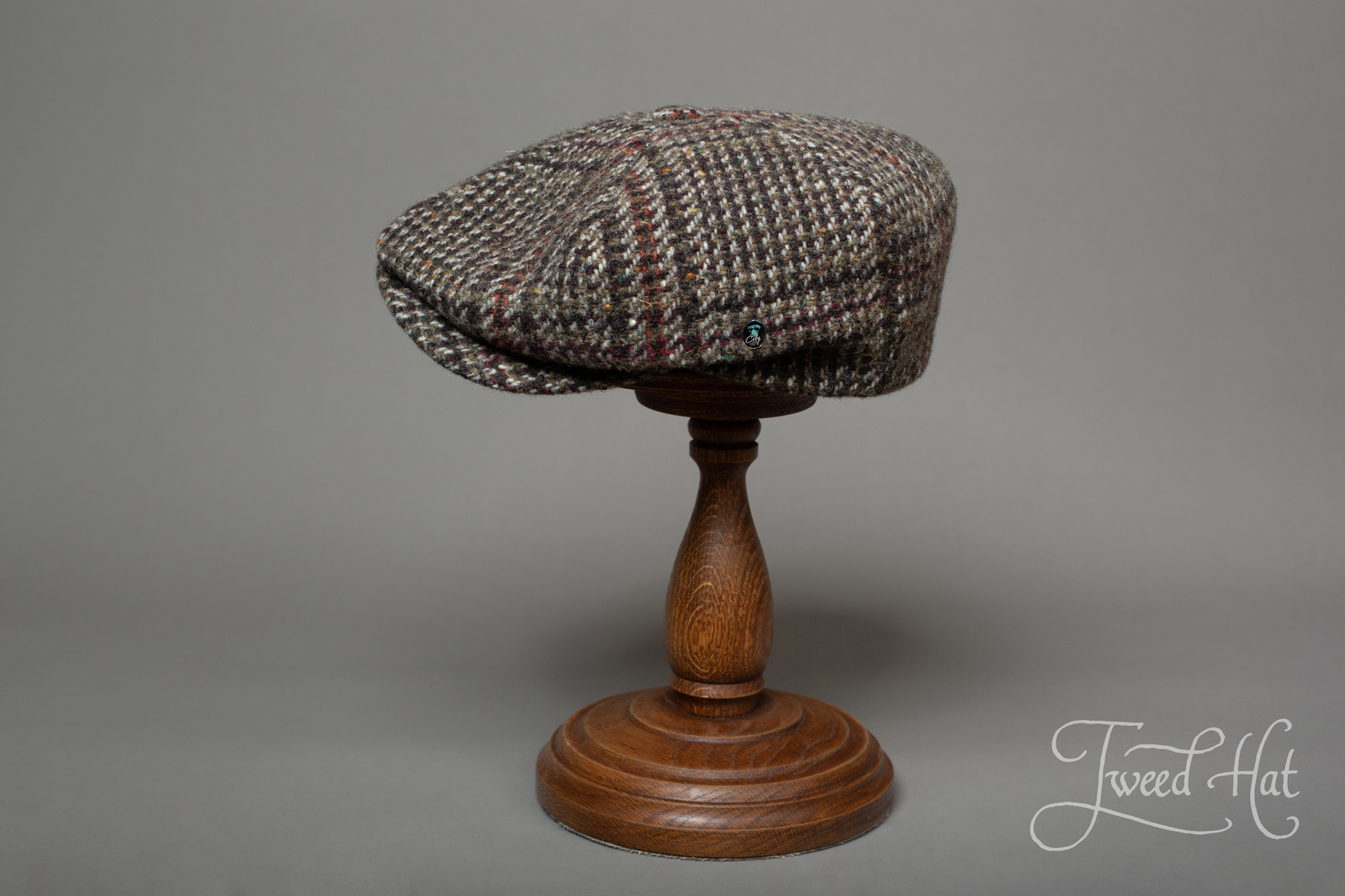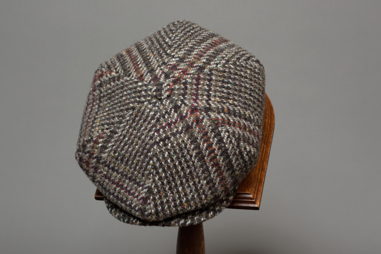 Volume 6-piece cap re-creates cap style from beginning of XXth century, made by old Belgian headwear factory City Sport (from Ardooie, West Flanders), produced exclusively for Tweed Hat store.