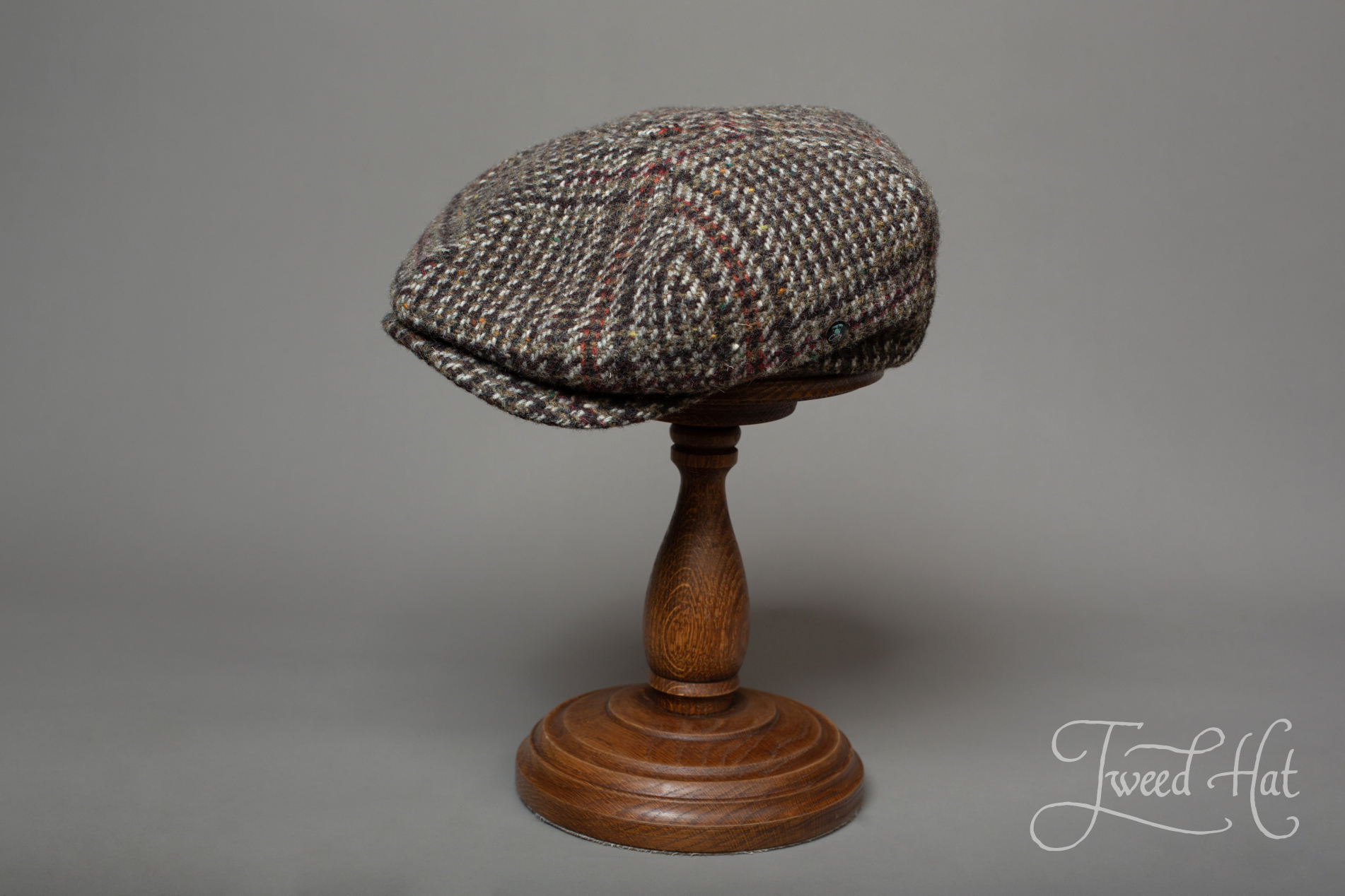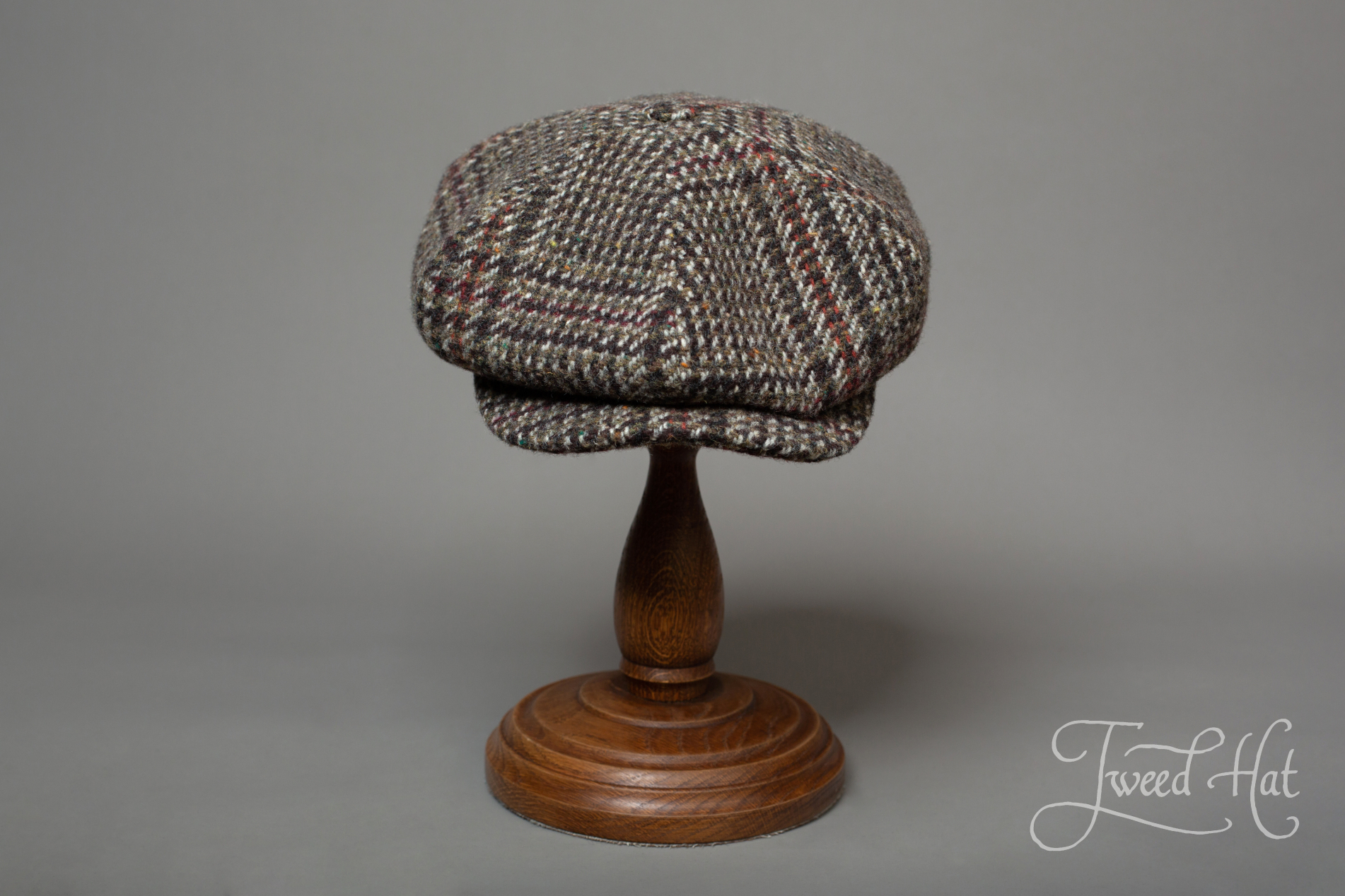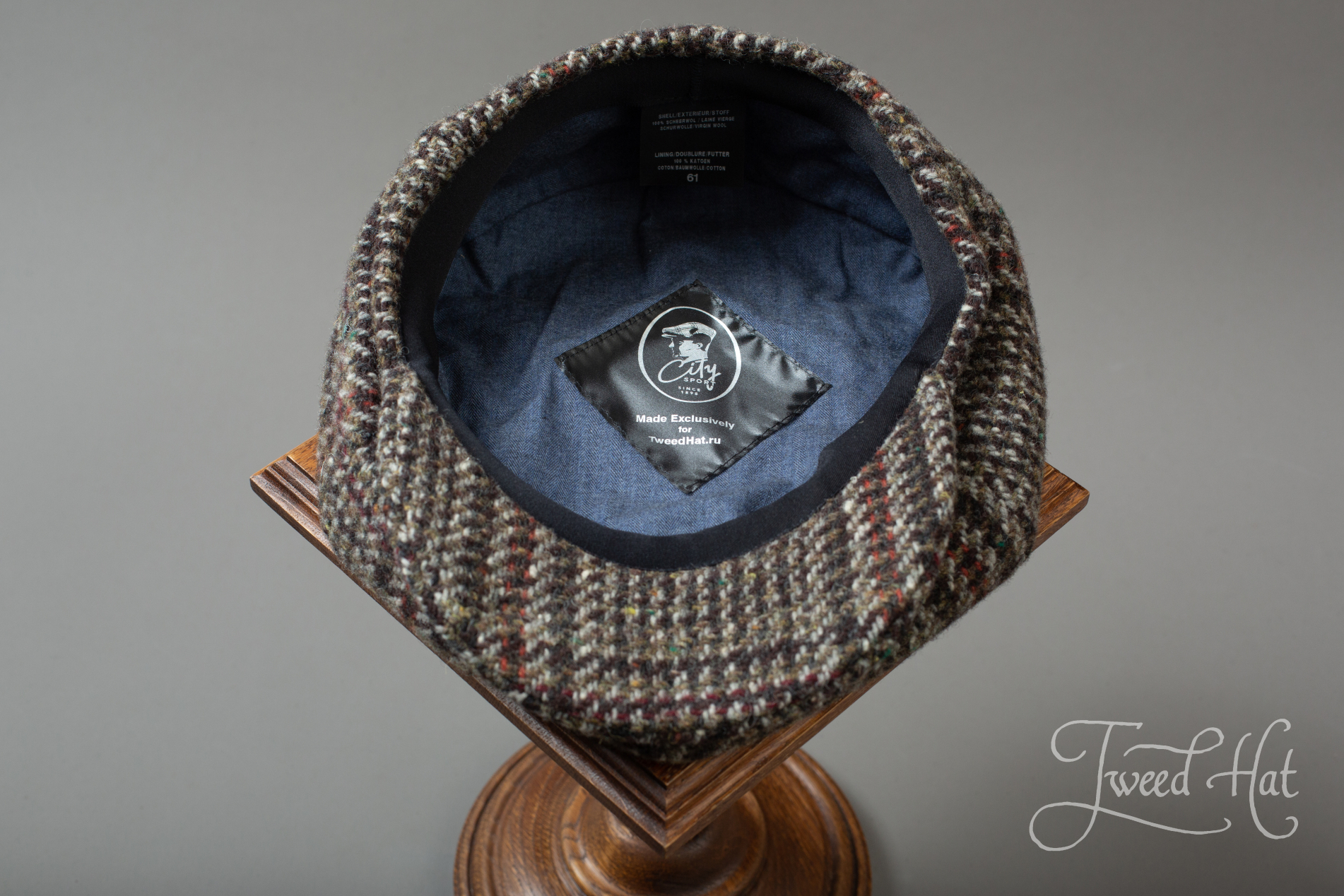 Volume 6-piece cap re-creates cap style from beginning of XXth century, made by old Belgian headwear factory City Sport (from Ardooie, West Flanders), produced exclusively for Tweed Hat store.