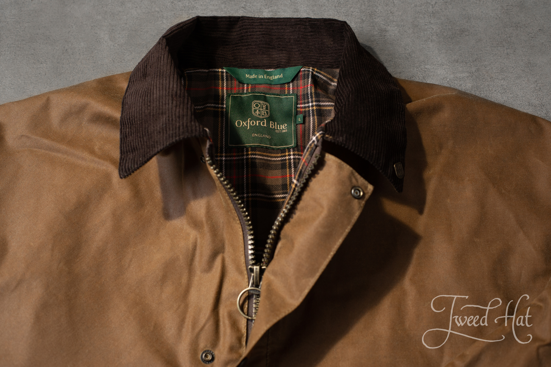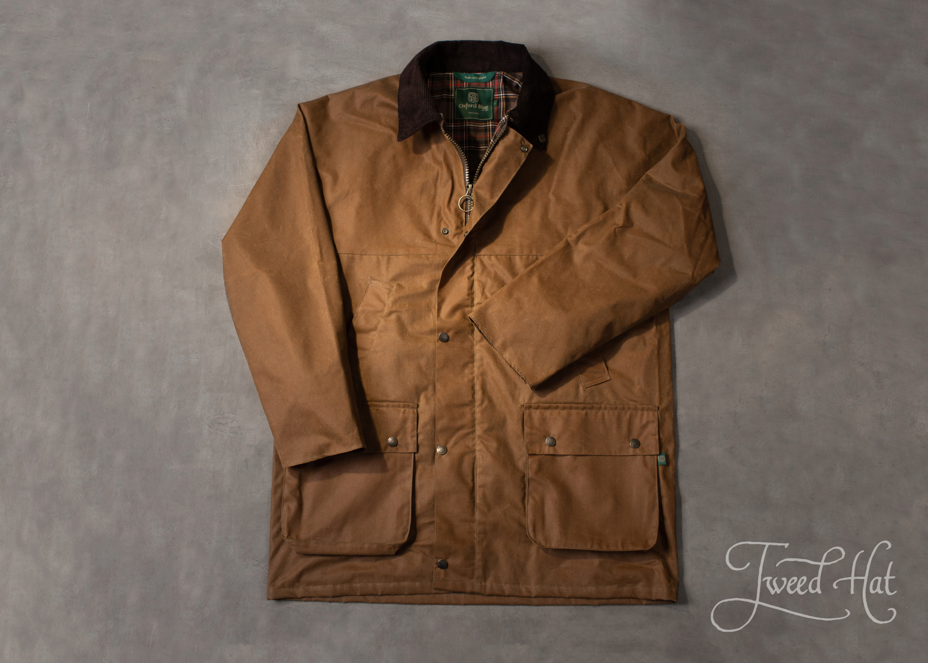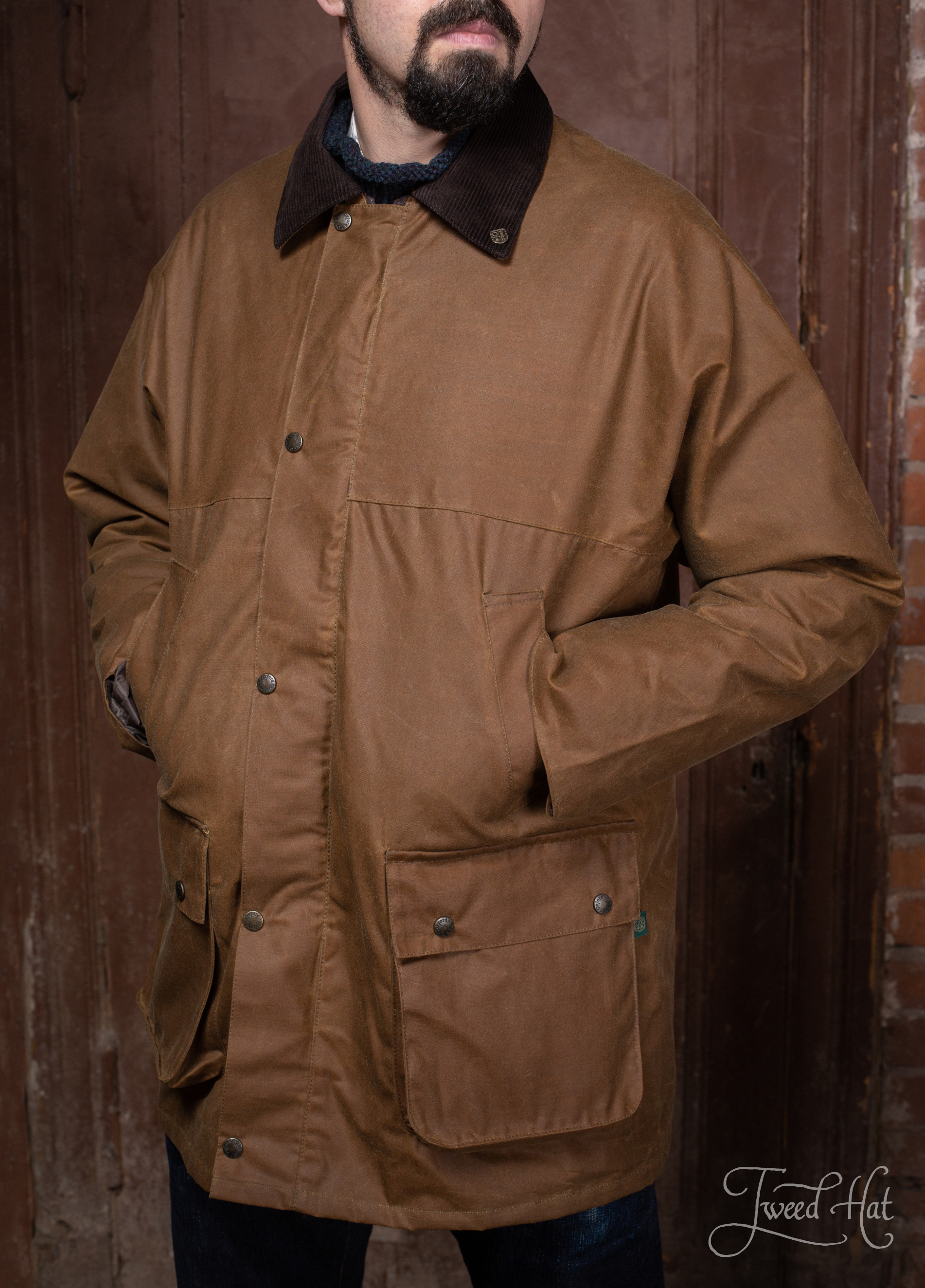 Classic English waxed cotton country hunting jacket made by Oxford Blue factory from Birmingham.