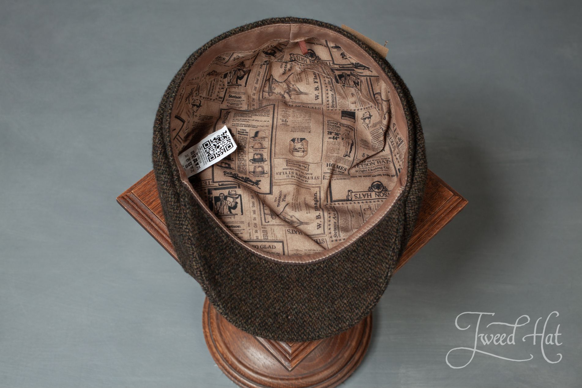 The cap's main material is a textured and very soft barleycorn tweed, made in Italy. It's 100% wool, and the lining is 100% cotton.