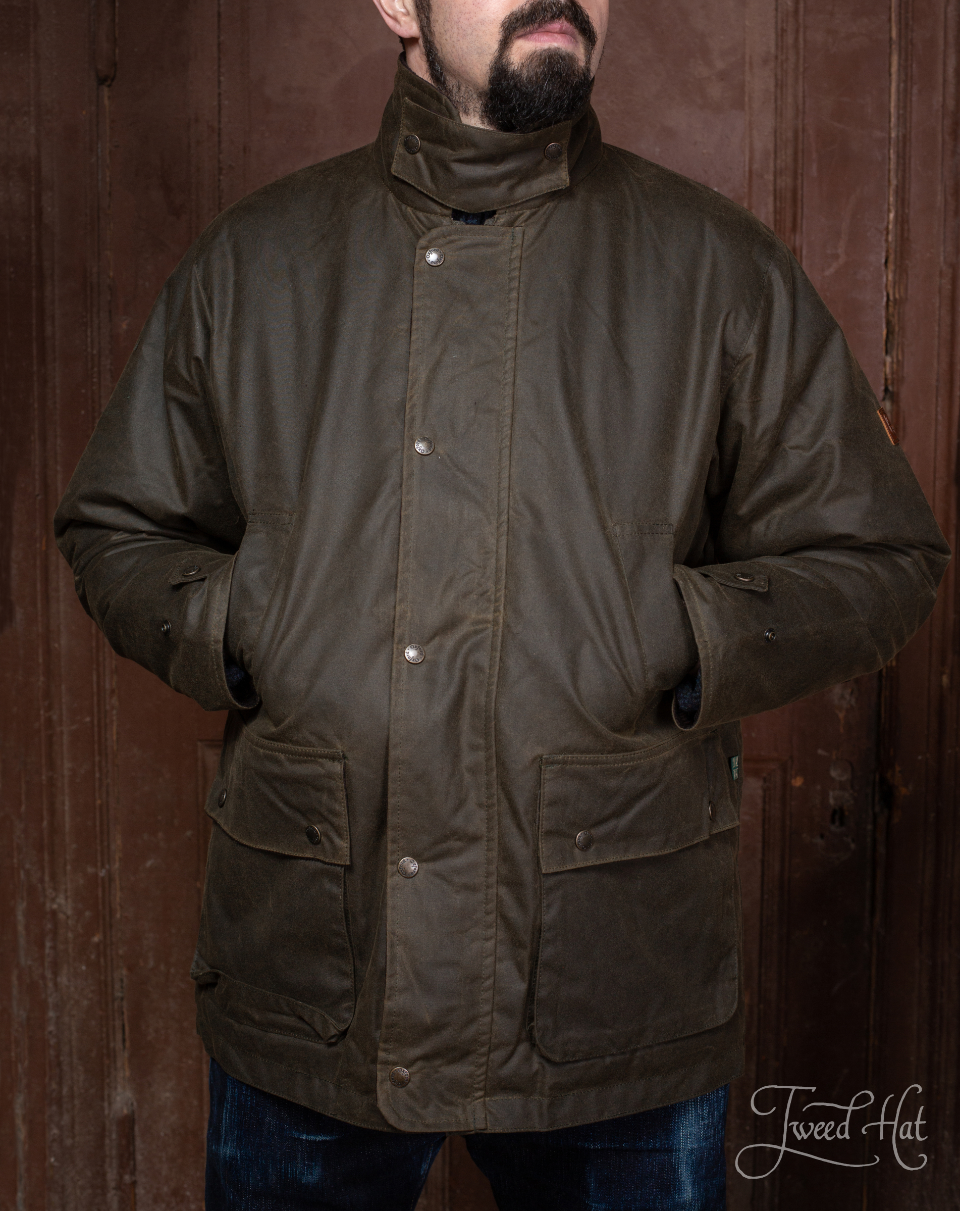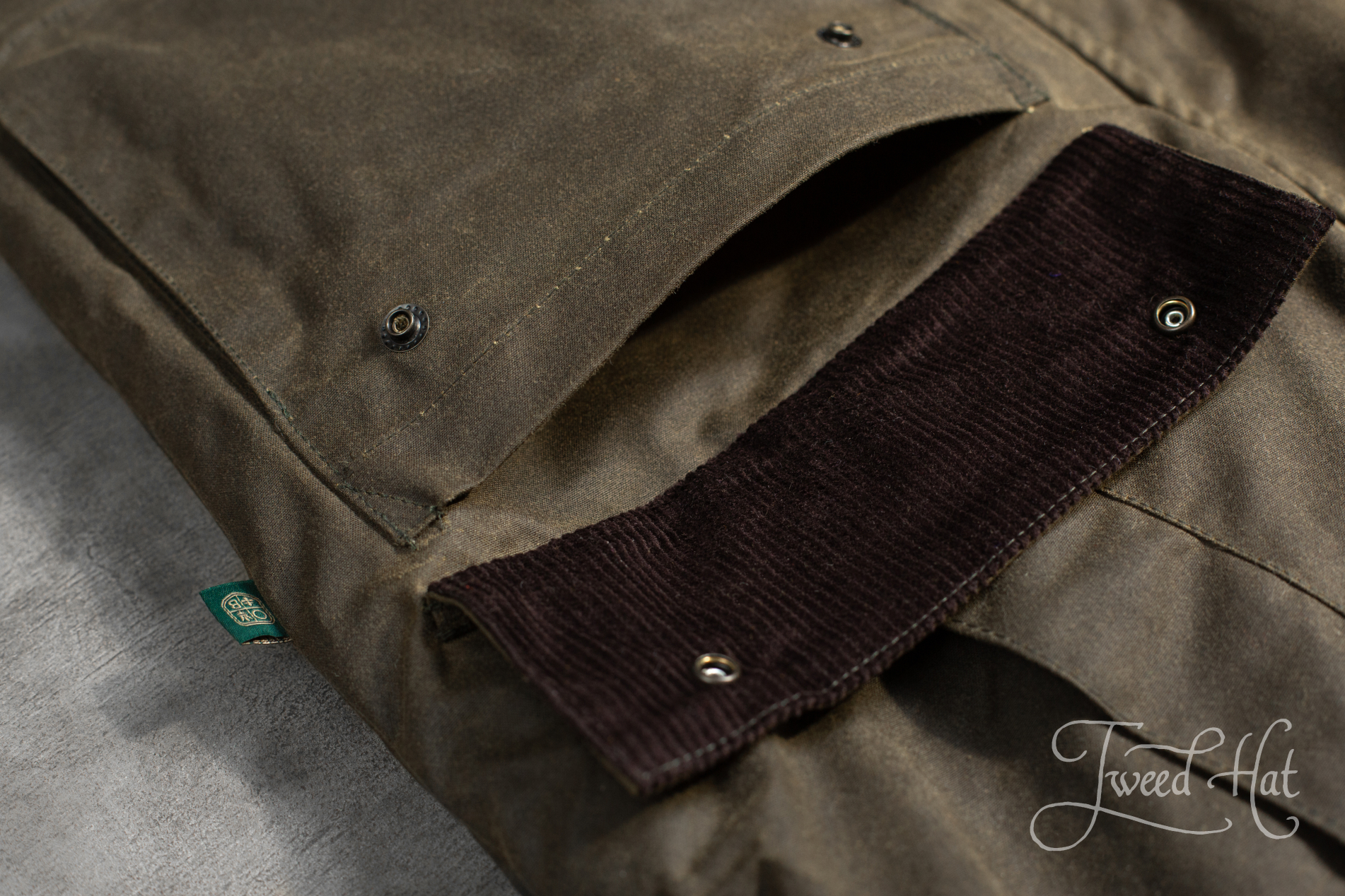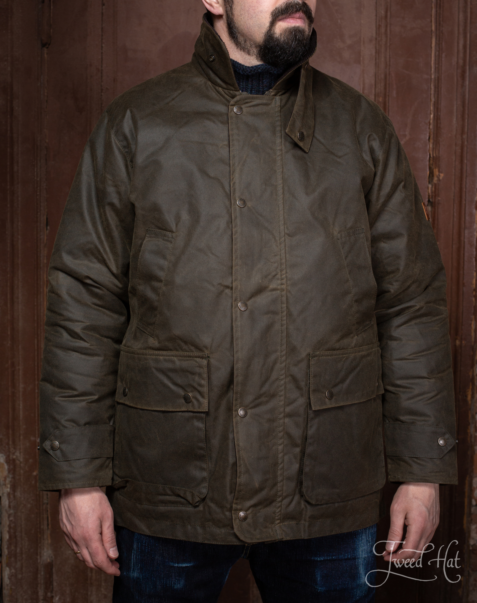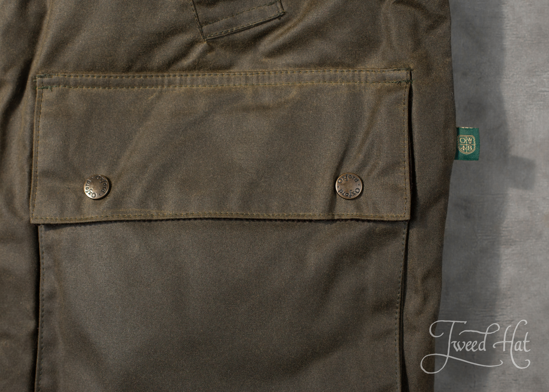 A classic English country jacket made of authentic waxed cotton from the Oxford Blue mill in Birmingham.