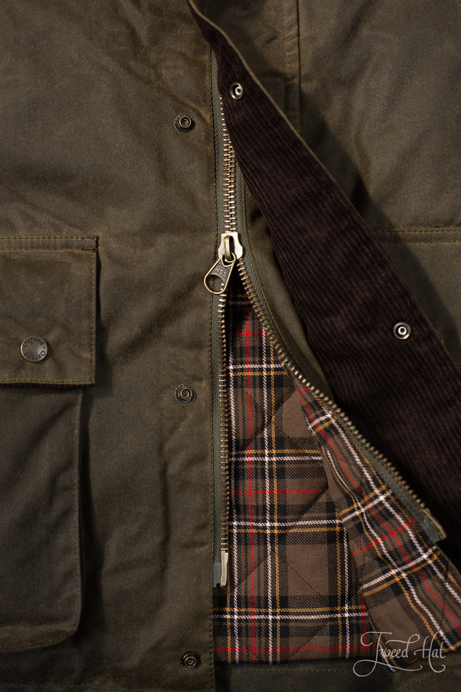 - Jacket fastens with a durable two-way brass zip and five snaps,