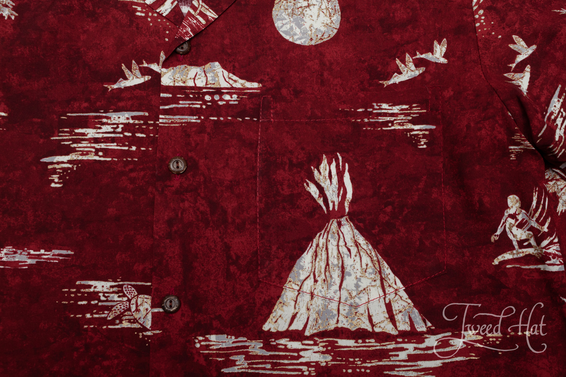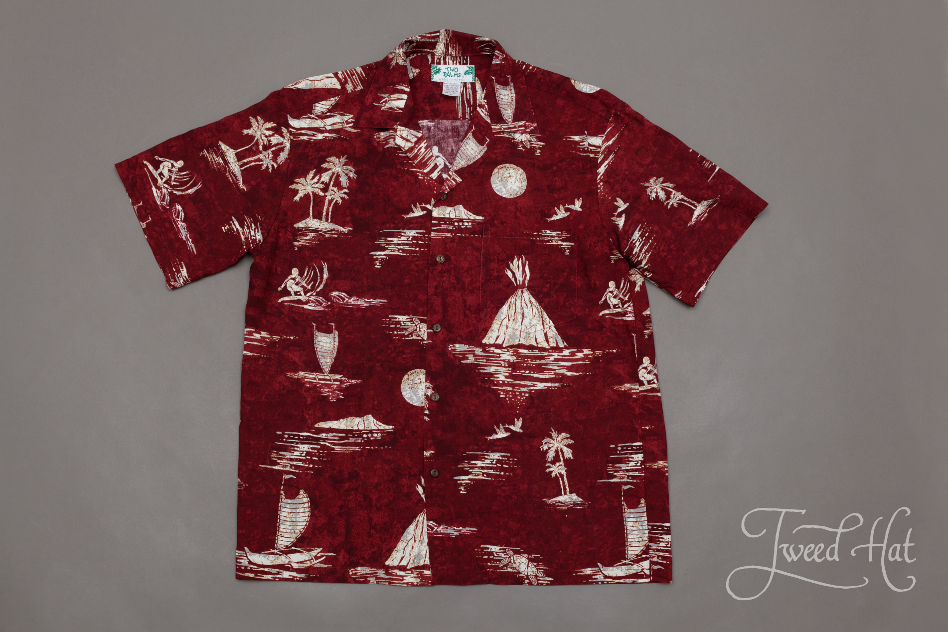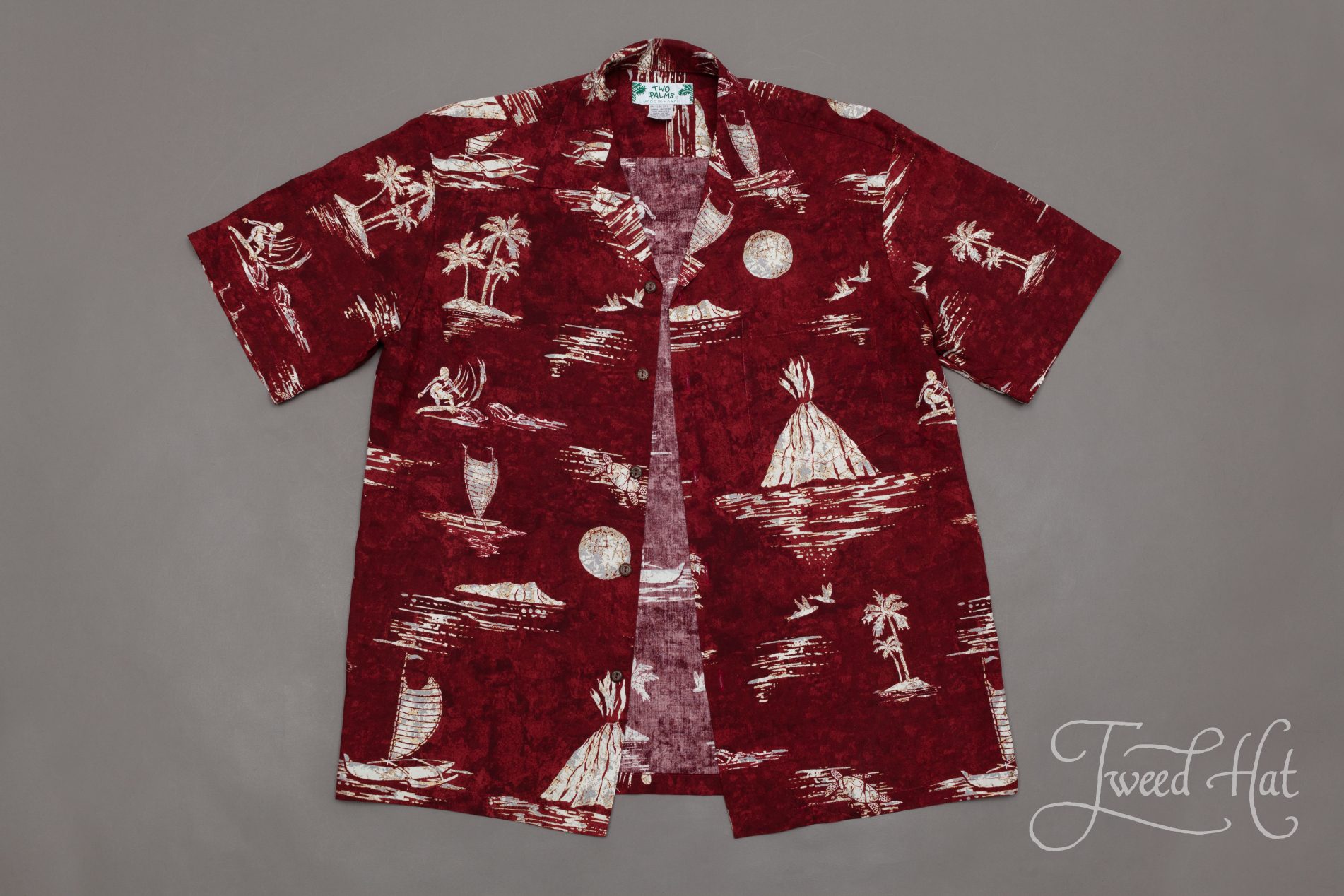 Классическая гавайская рубашка от маленькой фабрики Two Palms из Гонолулу, столицы Гавайских островов.