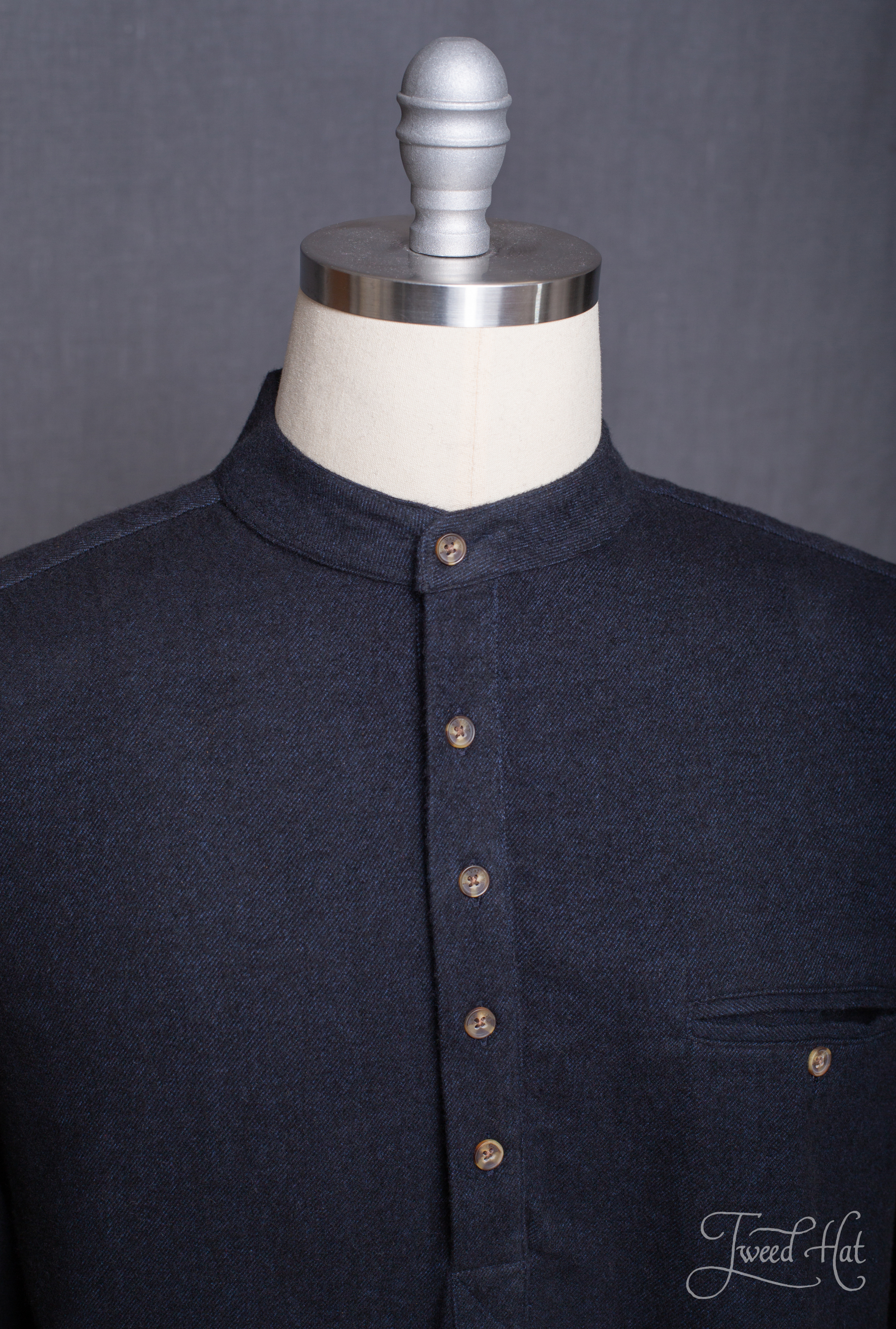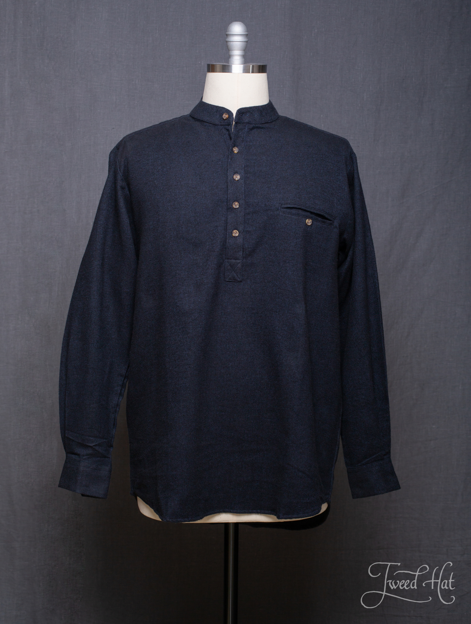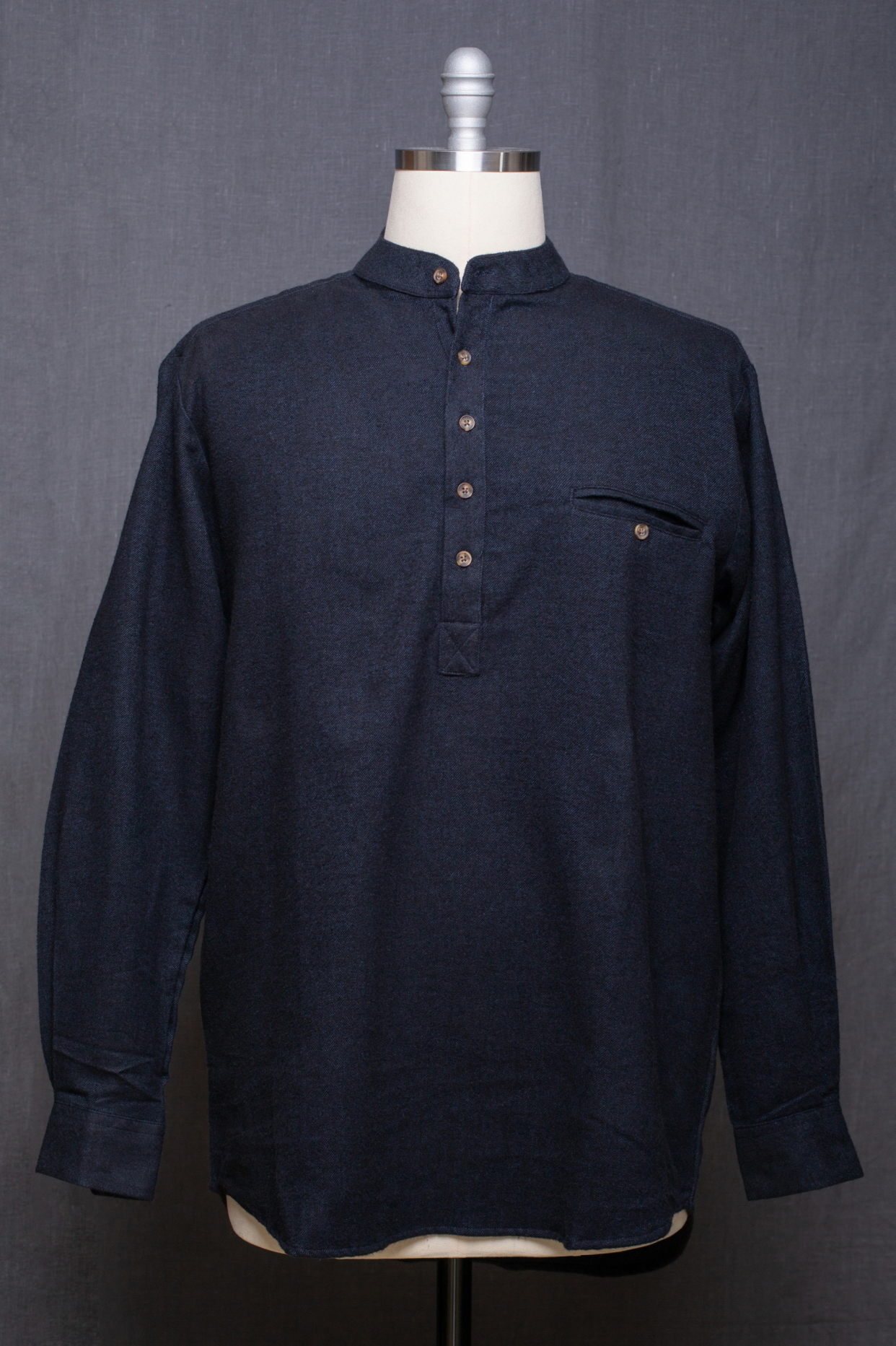 A shirt with soft stand-up collar made of comfortable and durable flannel in the early 20th century style.