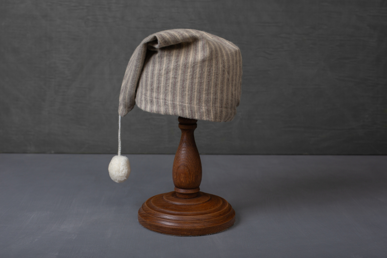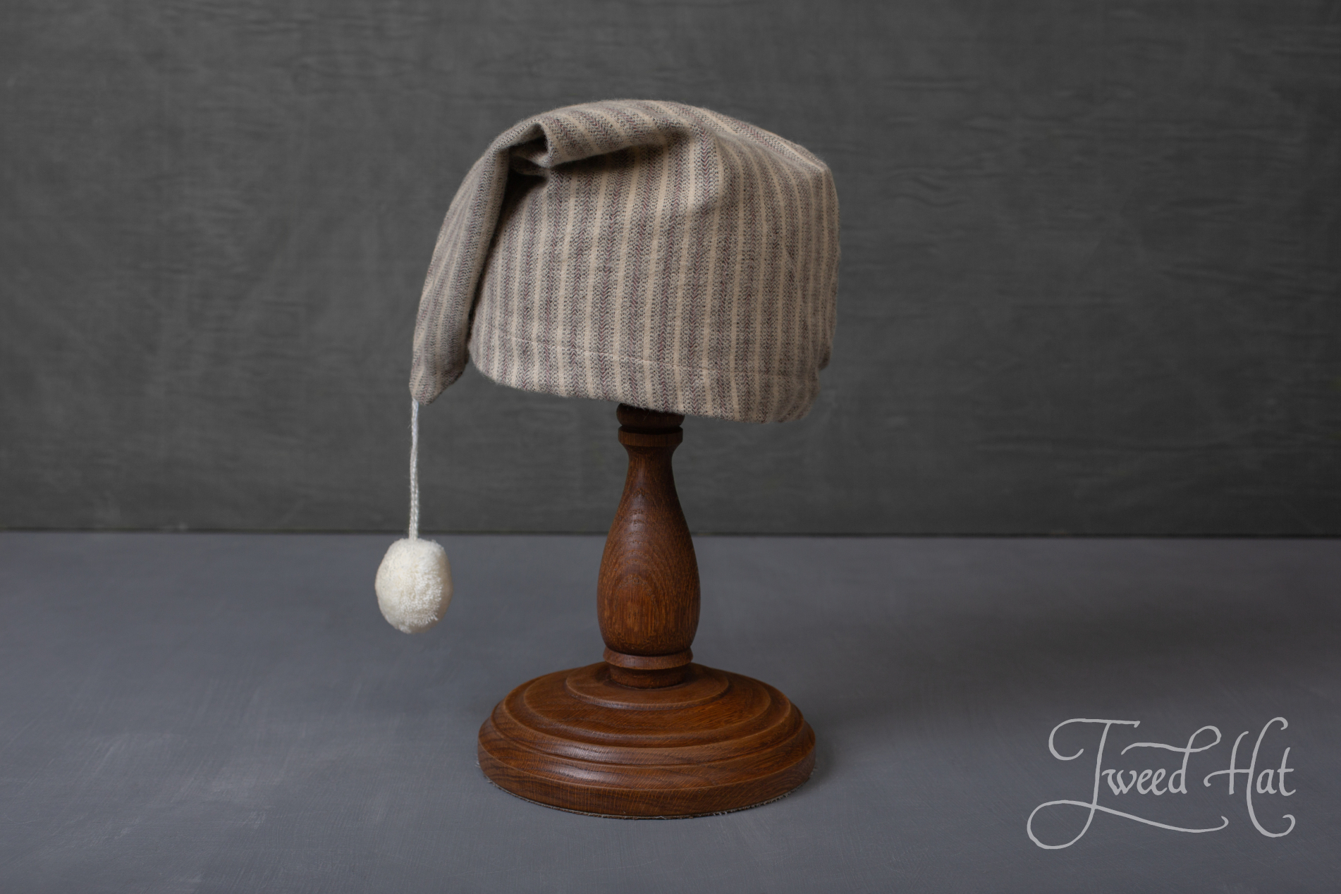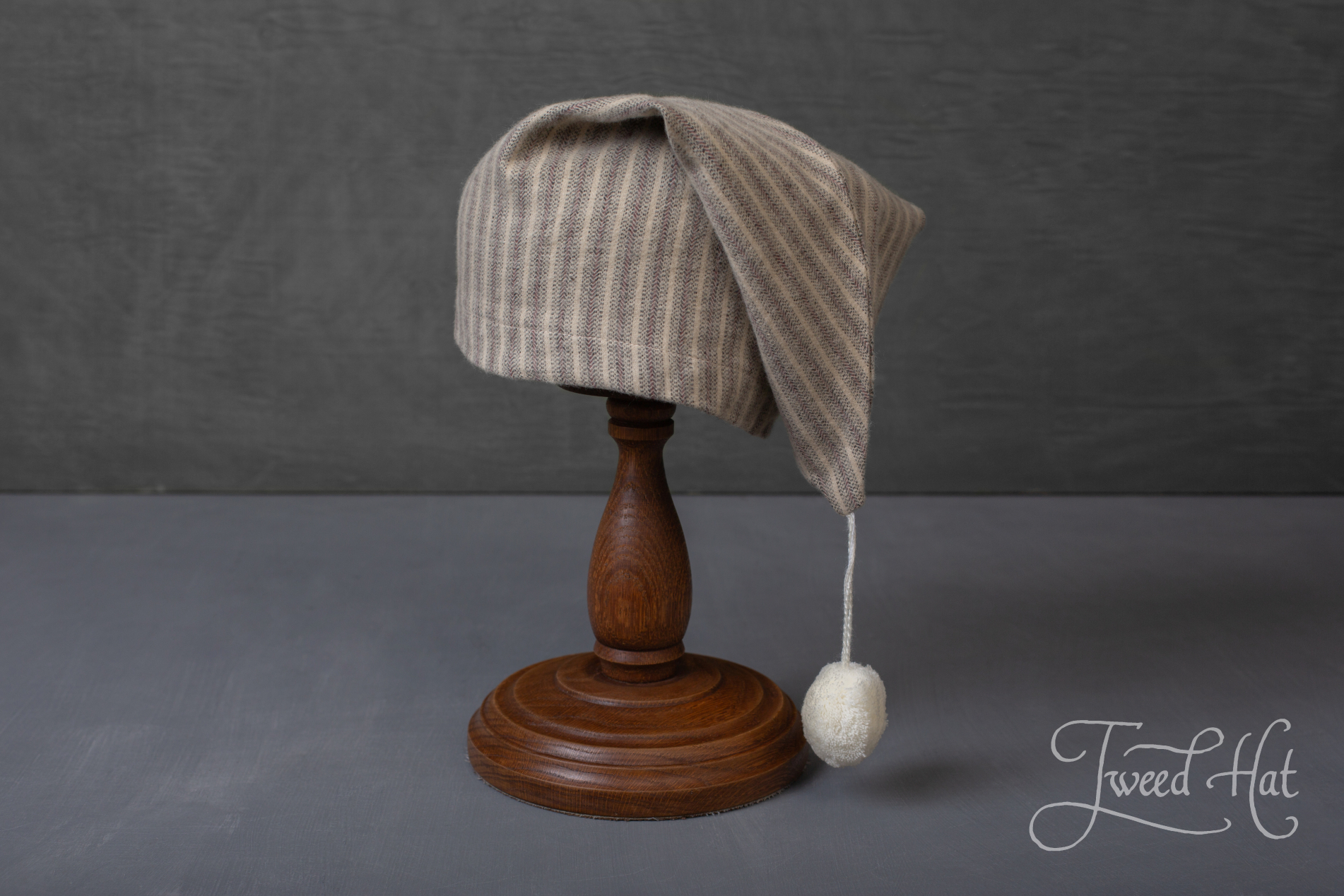 The flannel nightcap from the Irish brand Lee Valley, made of especially soft long staple cotton, with double blue stripe pattern.