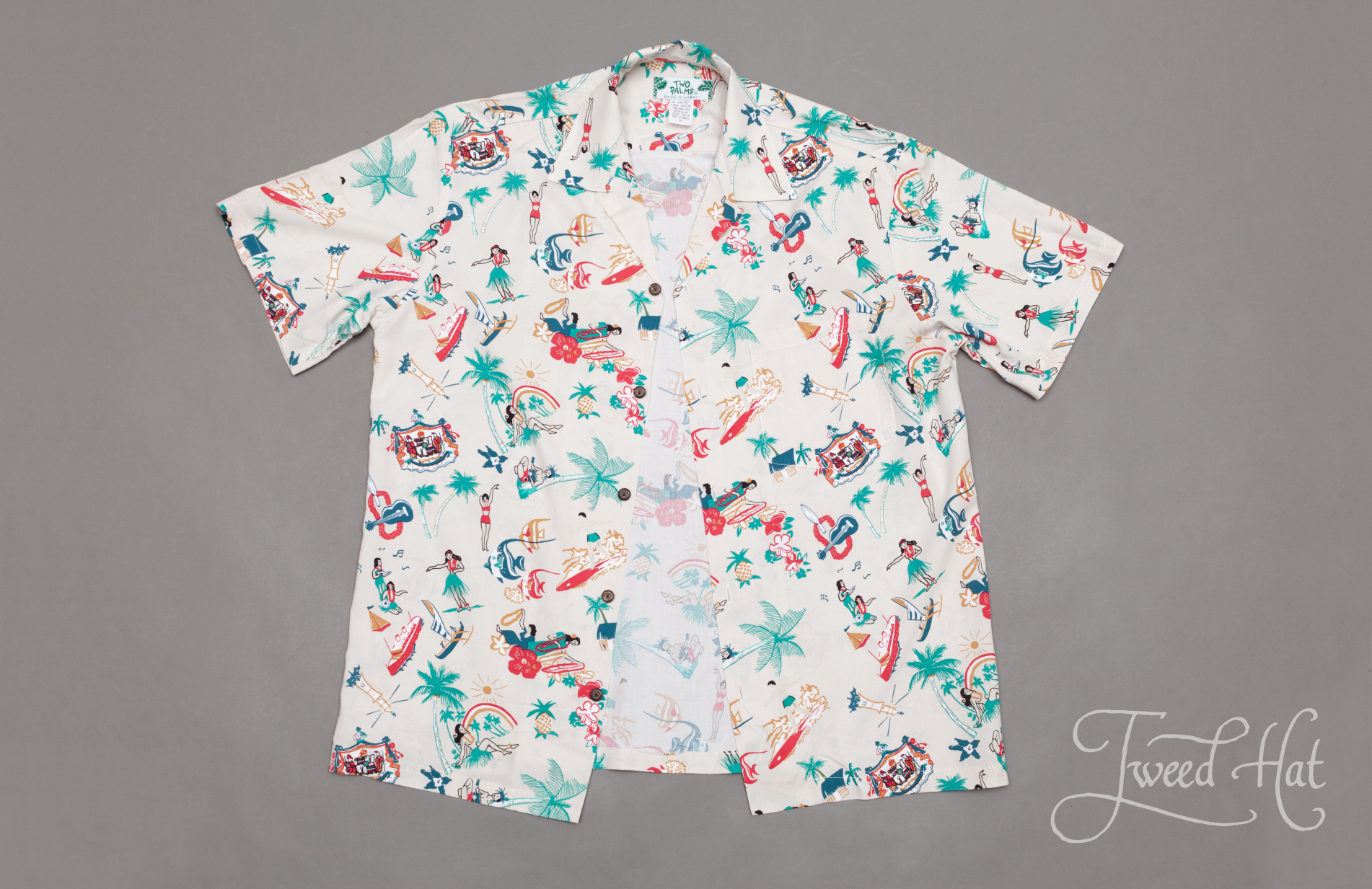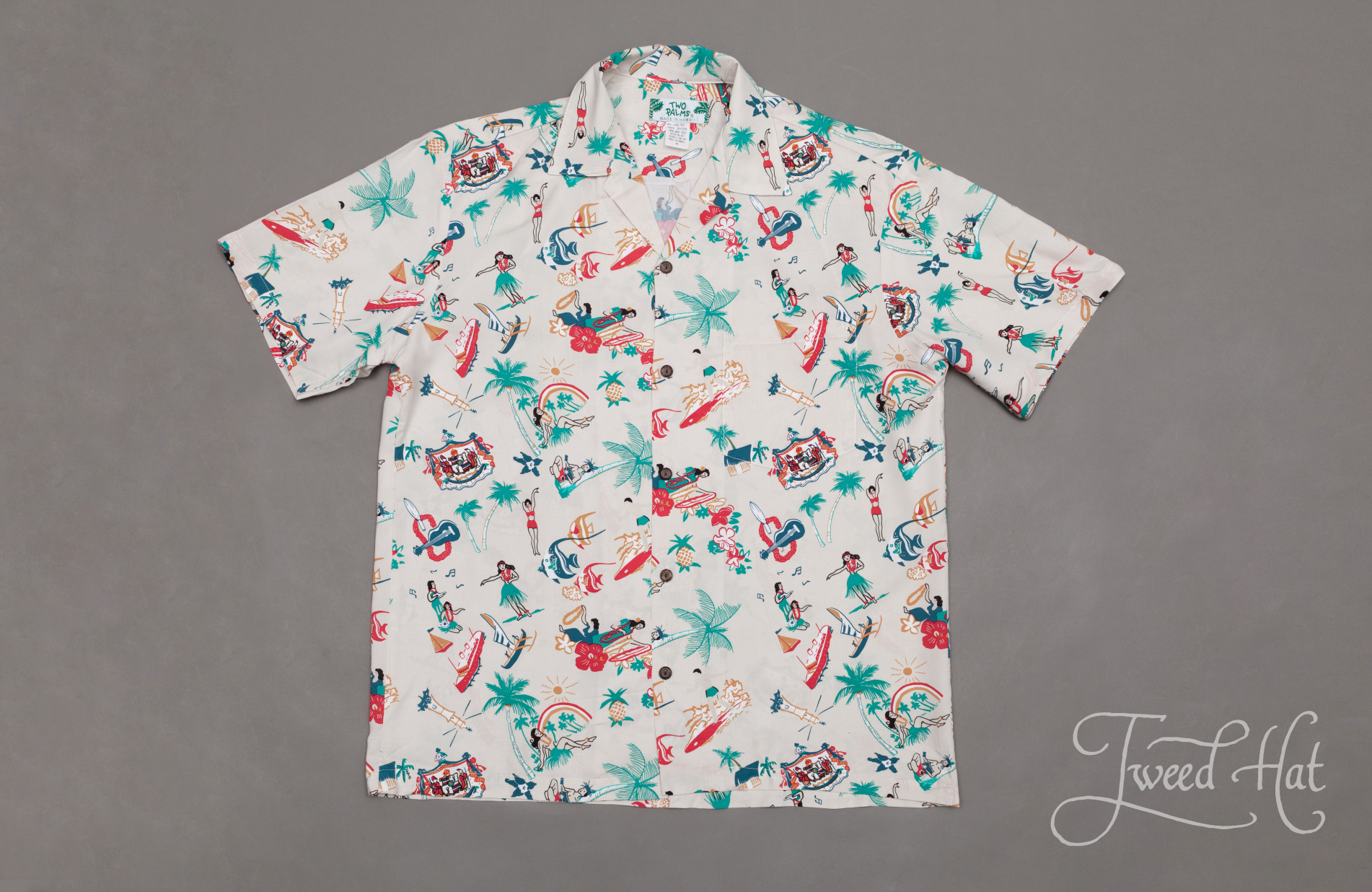 Классическая гавайская рубашка от маленькой фабрики Two Palms из Гонолулу, столицы Гавайских островов.