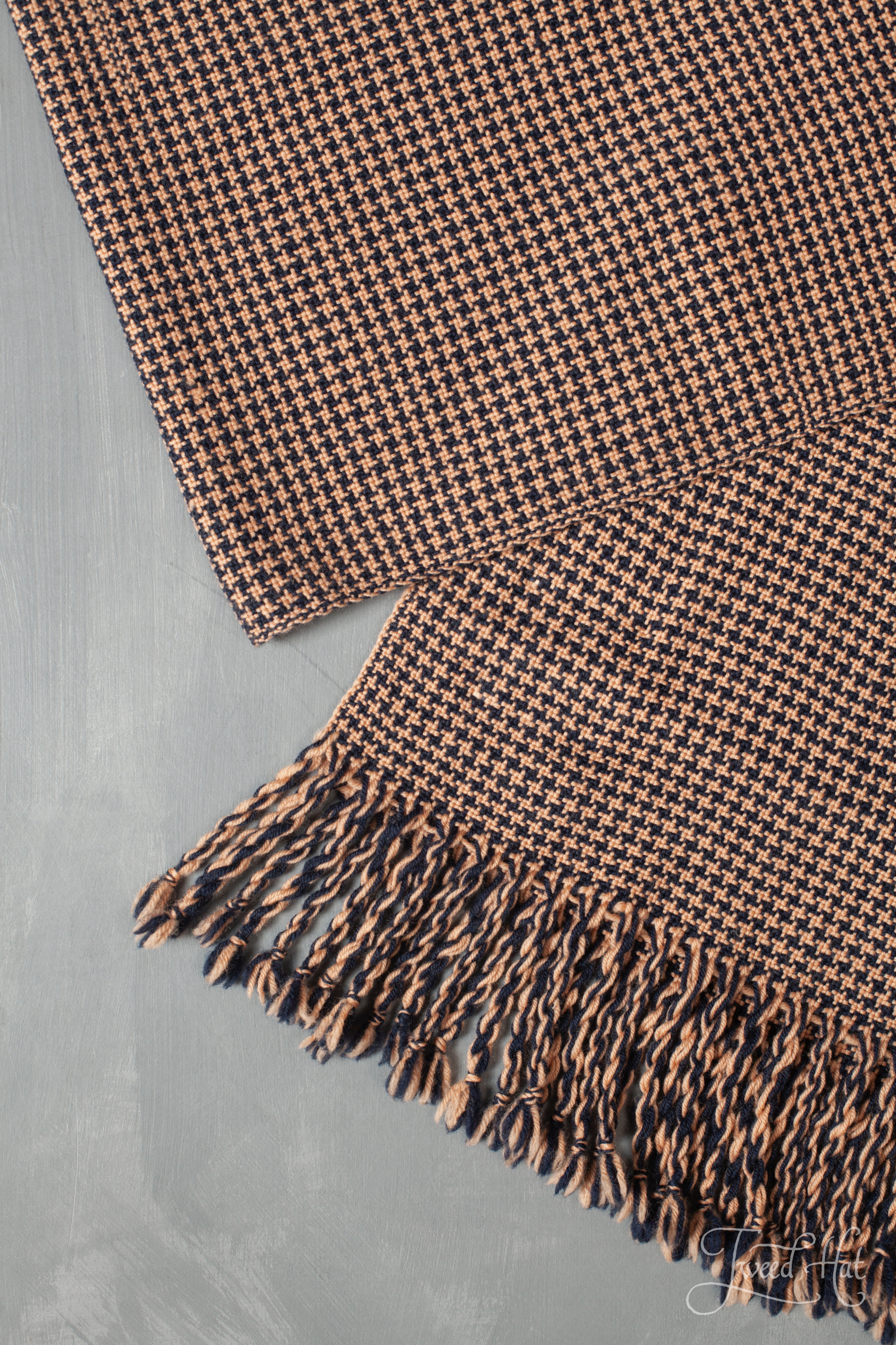 Navy and Beige Houndstooth Merino Handwoven Tweed Scarf by Old Pal /Handwoven Tweed/