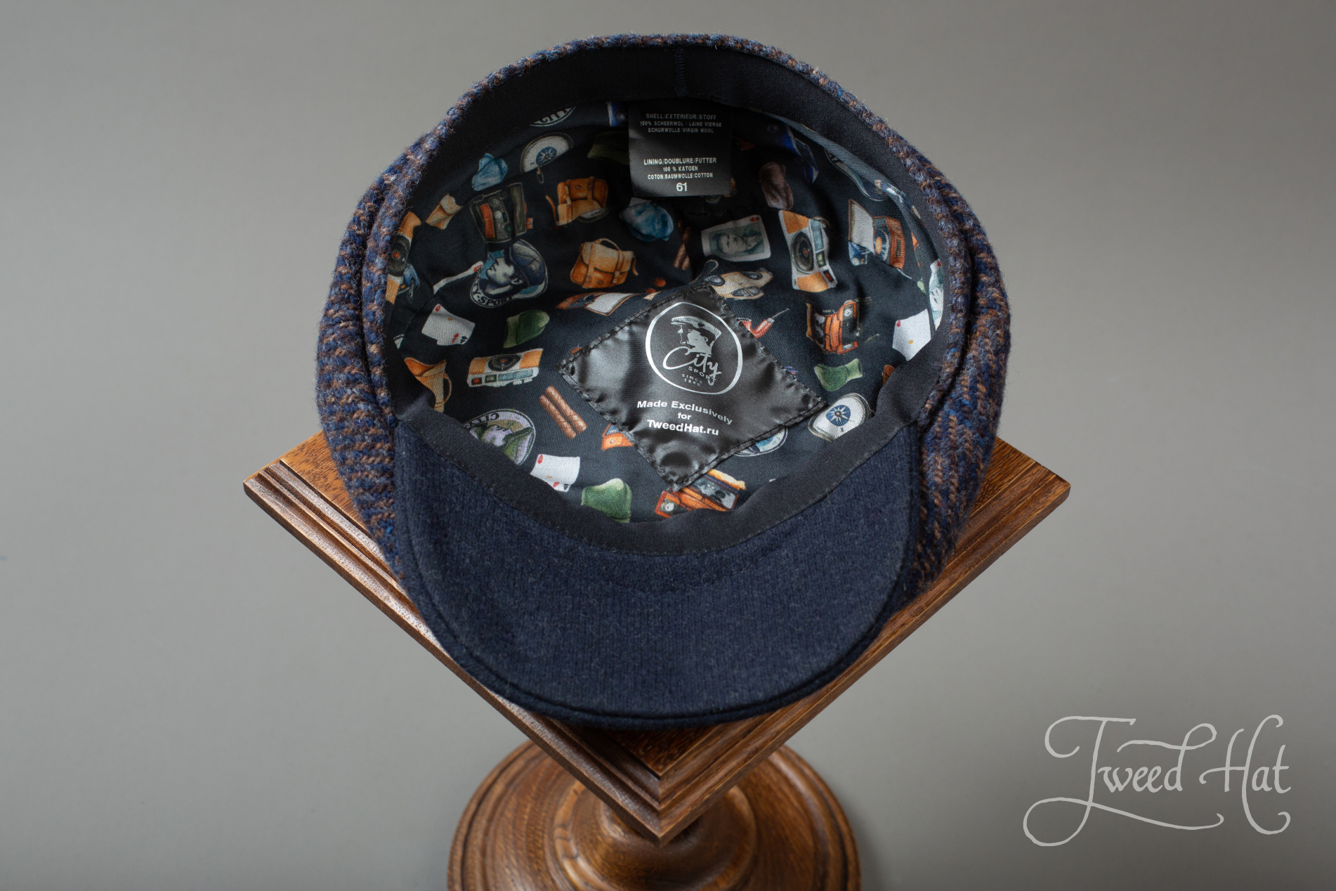 Classic 8-piece cap by old Belgian headwear factory City Sport (from Ardooie, West Flanders), produced exclusively for Tweed Hat store.