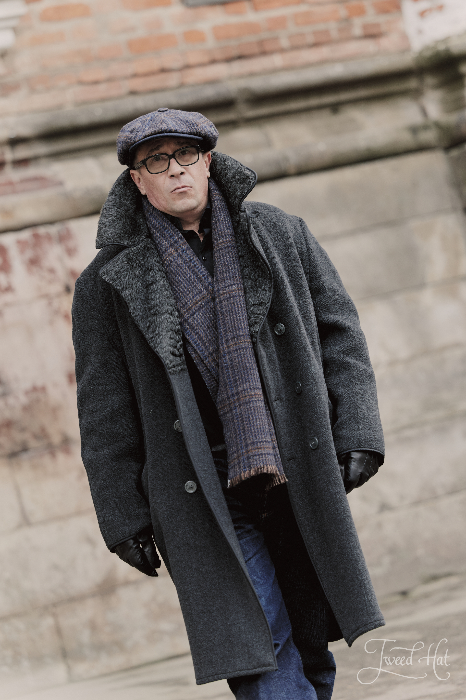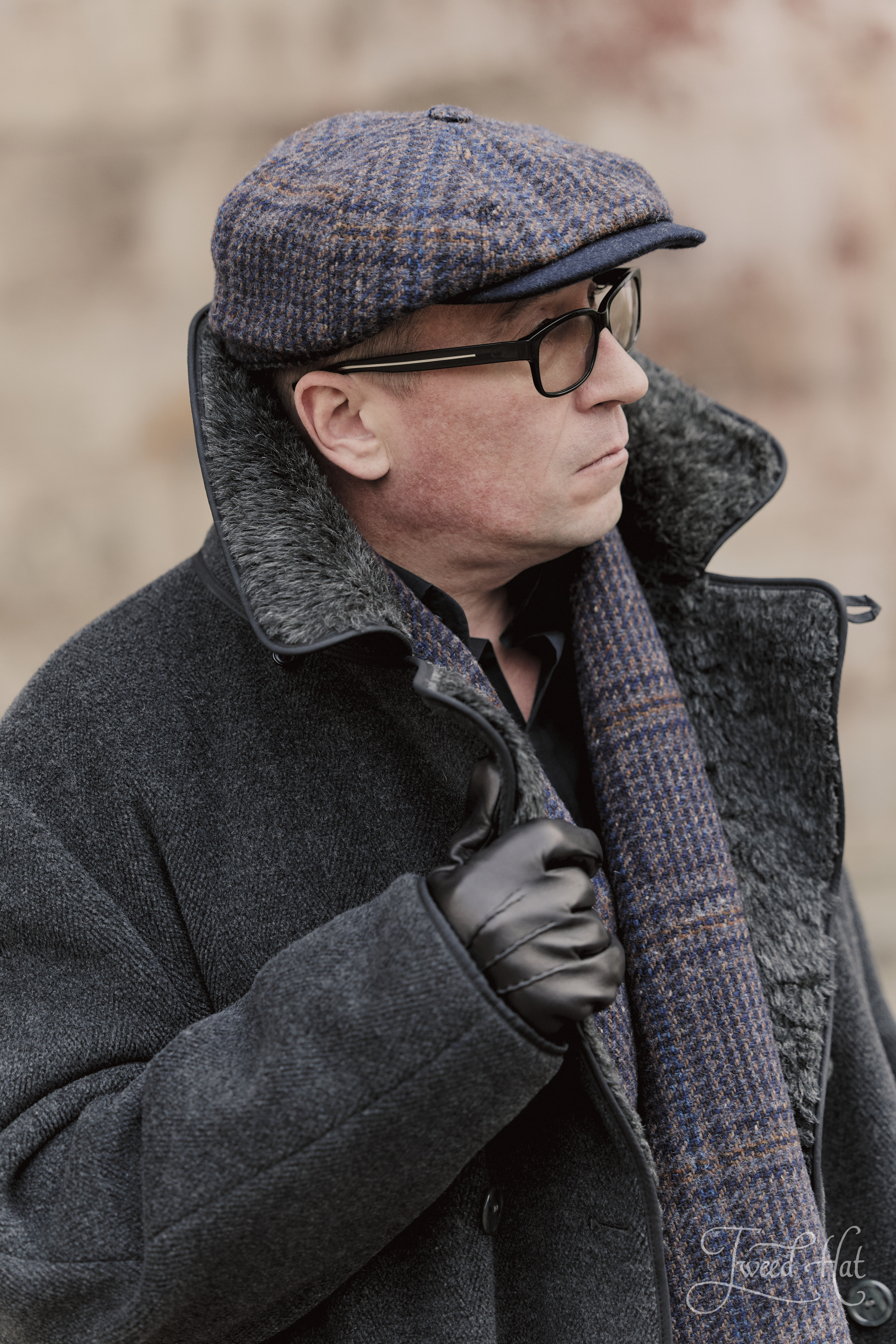 - heavy and textured Italian tweed with a large checkered pattern,