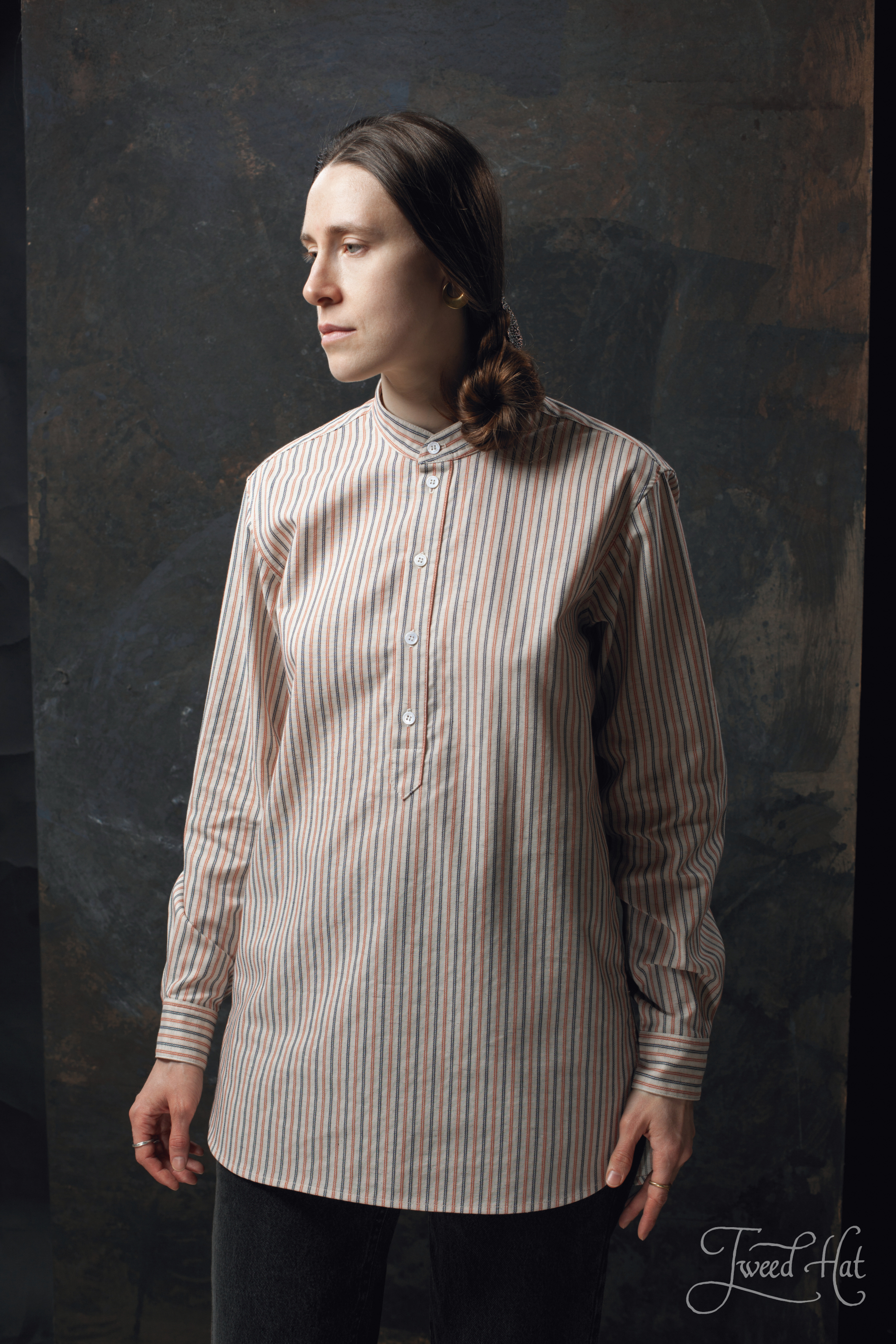 A cut designed from scratch and inspired by European shirts from the first half of the 20th century. First-class fabrics in vintage style, custom-made for Old Pal by one of the best textile mills in Portugal.