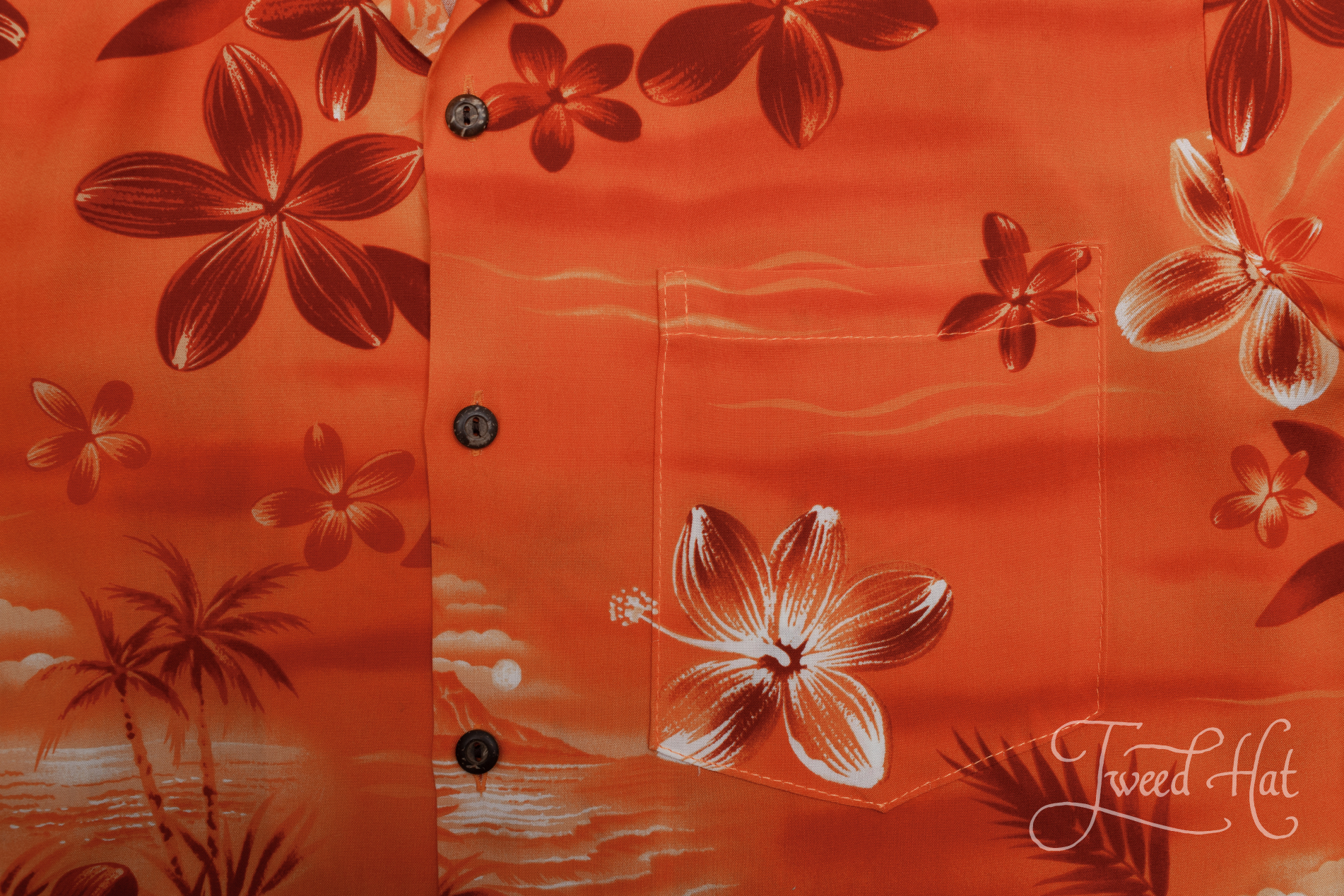 Оранжевая гавайская рубашка с цветами в лунном свете из рэйона Two Palms Hawaii /100% Rayon/