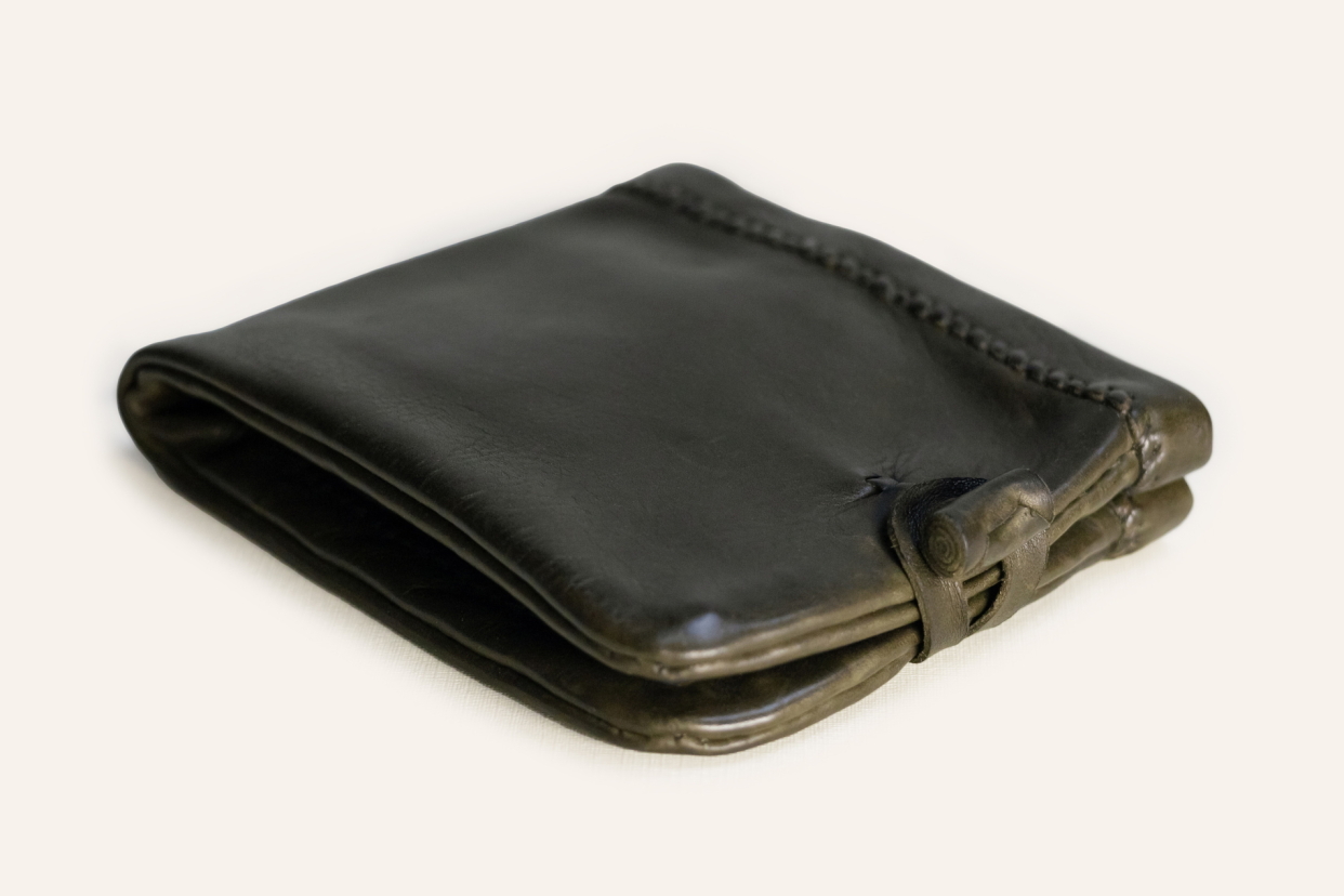 A leather wallet for a contemporary urban dweller, made according to ancient technologies, in the wabisabi aesthetic.