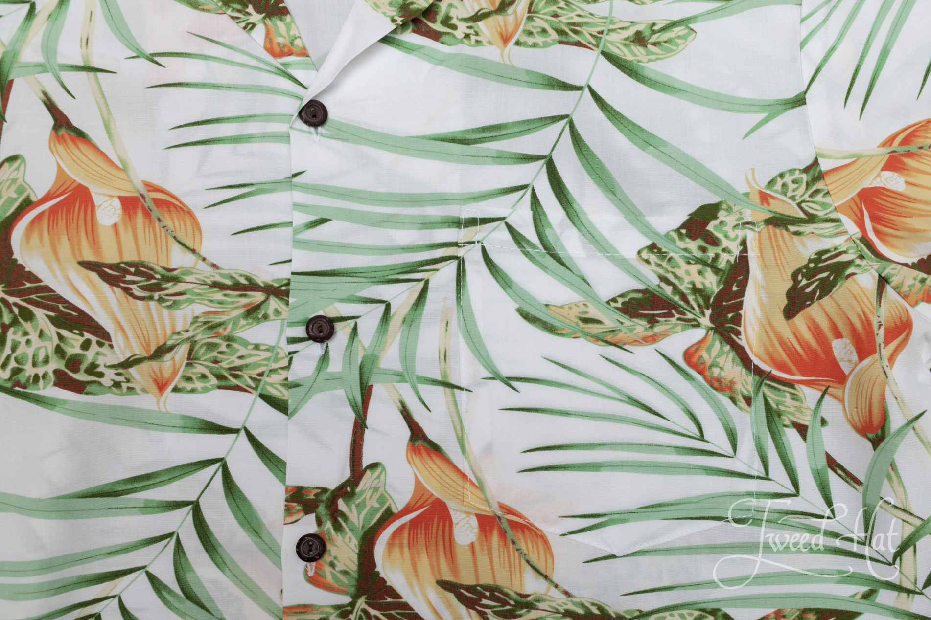 White Rayon Aloha Shirt with Napili Tropical Flowers by Two Palms Hawaii