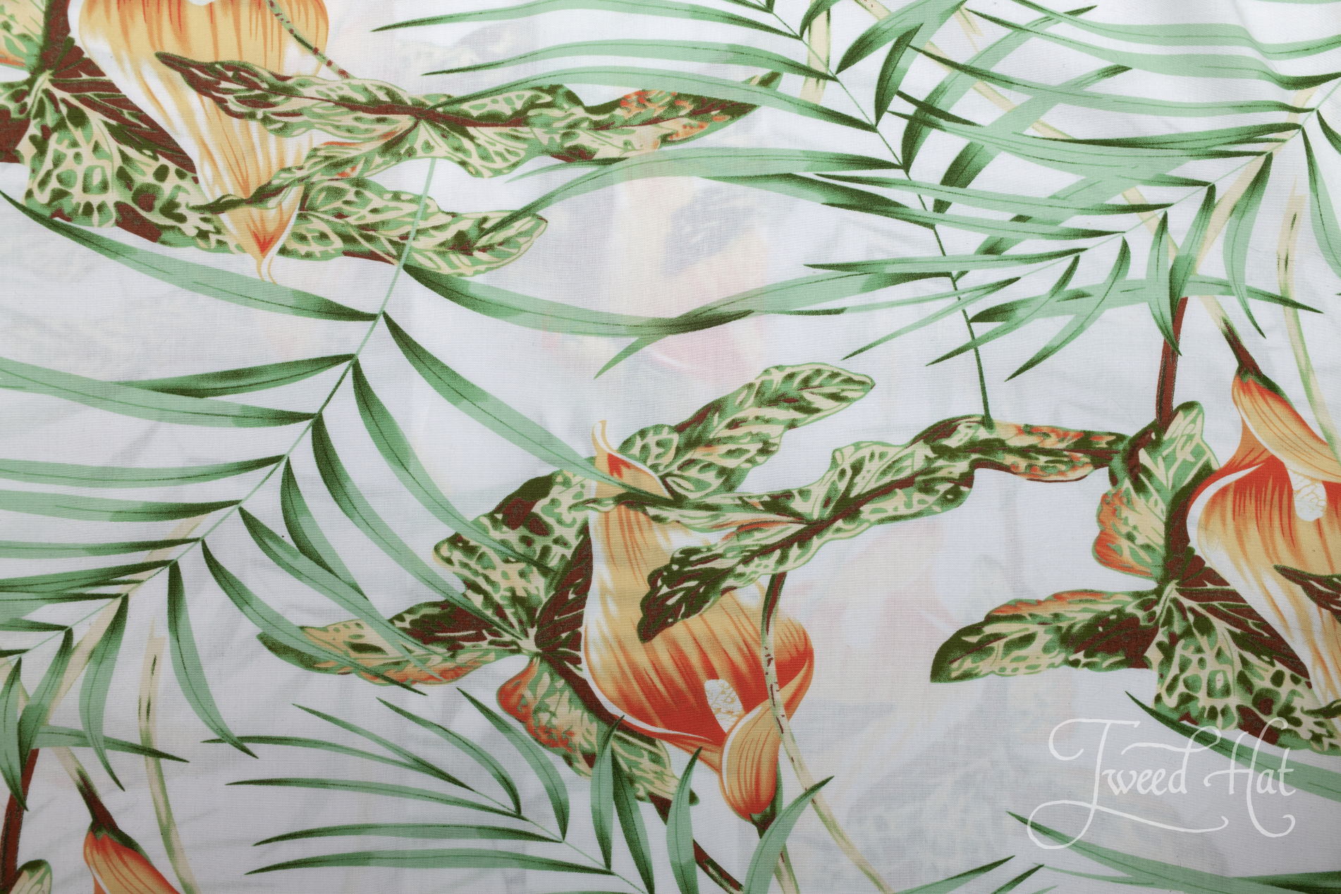 Белая гавайская рубашка с тропическими цветами Напили из рэйона Two Palms Hawaii /100% Rayon/